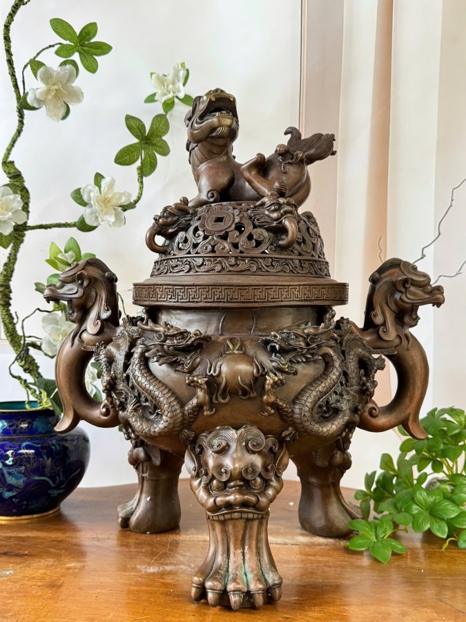 Giá: 17tr Kích thước: N42 cm, C50 cm, S30 cm - Chất liệu đồng, chạm trổ cầu kì, sắc nét, sống động từ chi tiết - Có mộc dưới đáy - Dáng sang trọng tuyệt đẹp