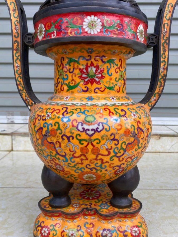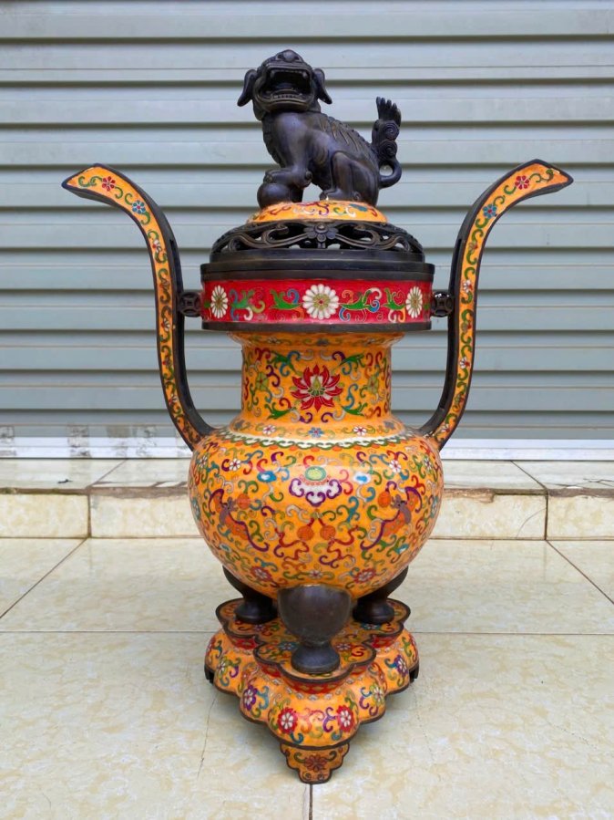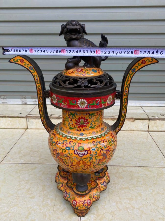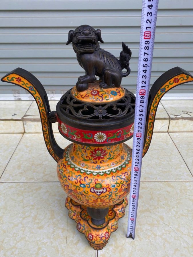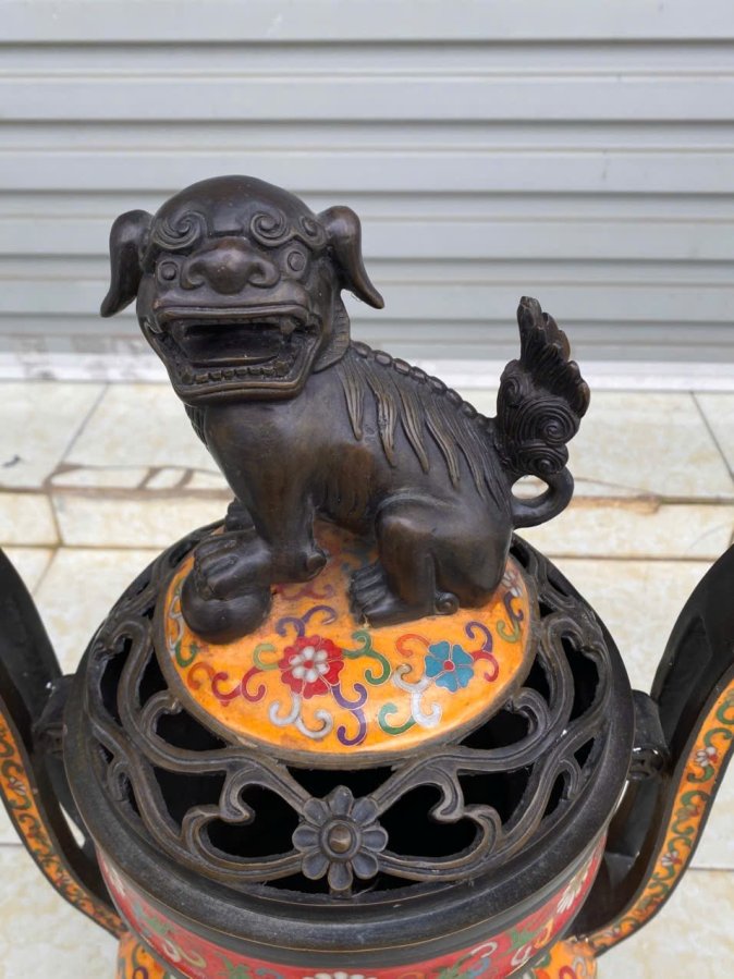 👉 nắp nghê vờn cầu to chà bá. Men pháp lam cao cấp. Đáy mộc triện chữ cổ . Trưng bày chất như nước cất ạ...