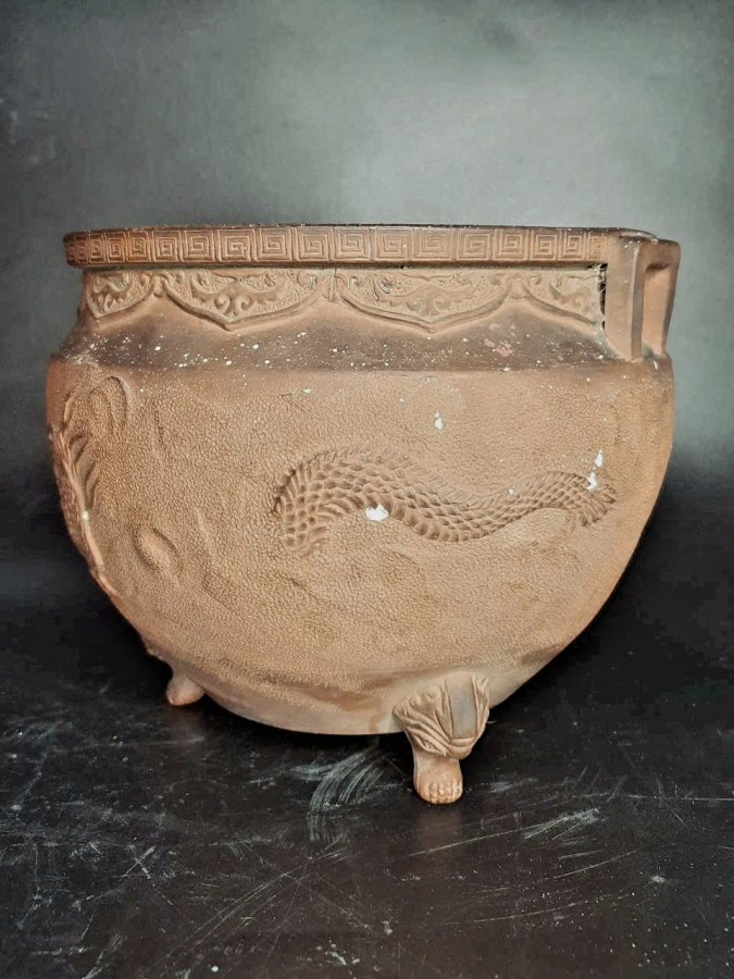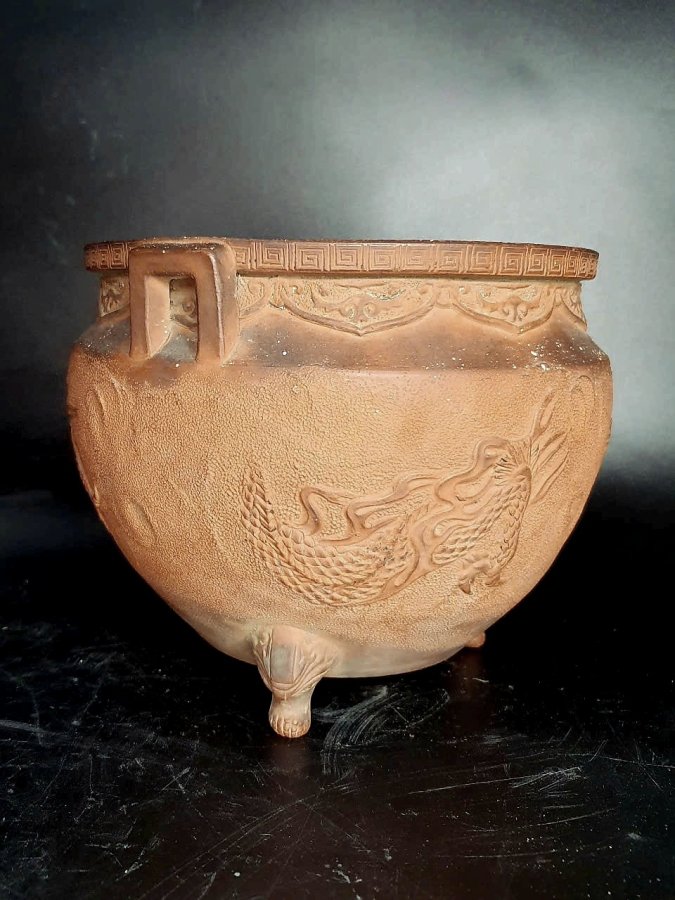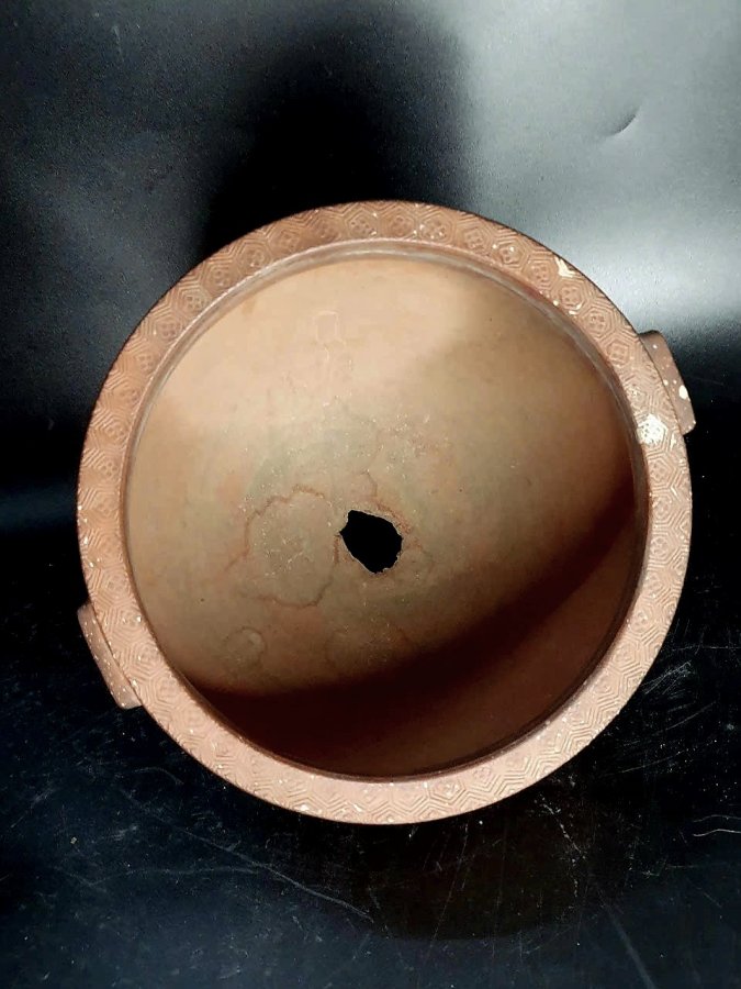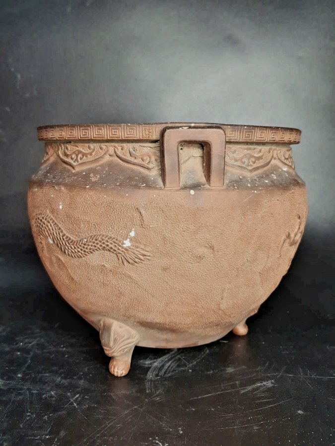 Đỉnh hương gốm mộc chuẩn cổ.Cao 15cm*đkm 17,3cm.(bị khoét lỗ cố tình để trồng cây,có thể giúp khách trám lỗ nếu cần).