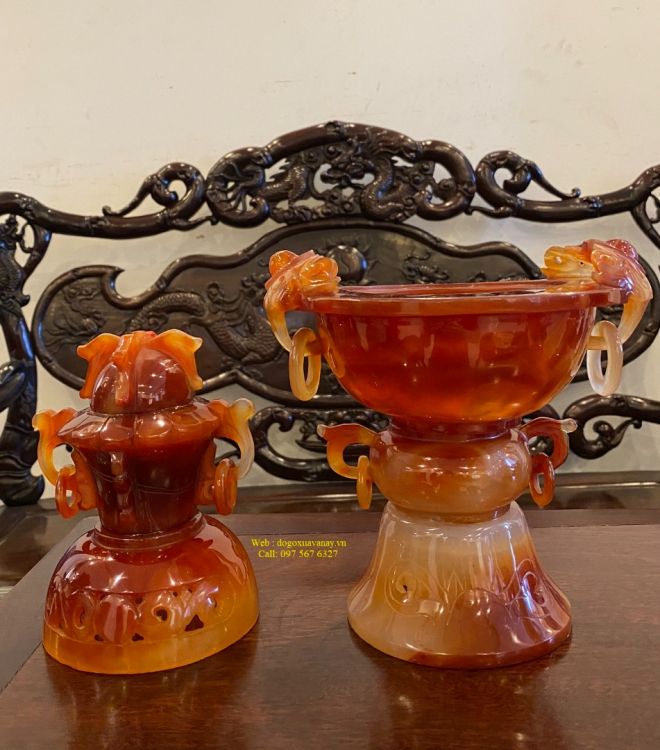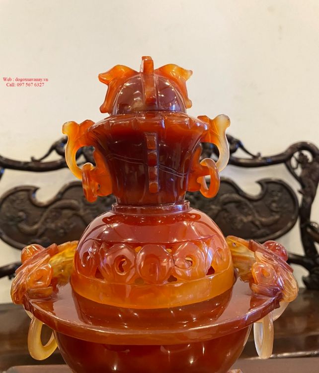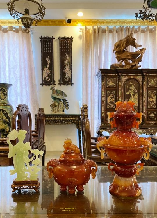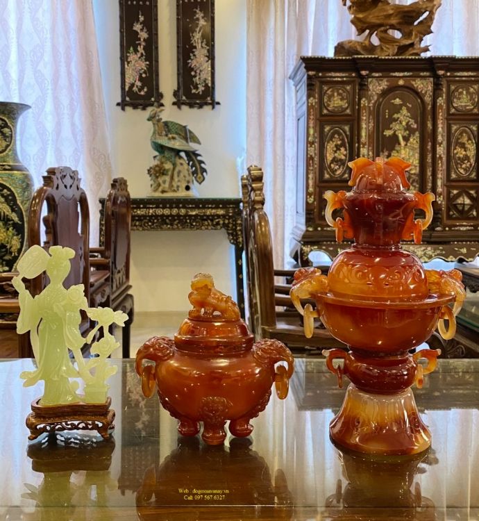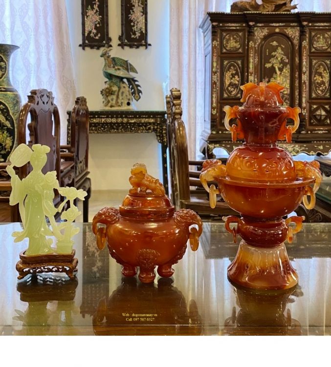 Đỉnh Ngọc Mã Não 30cm này Em có chụp chung với 1 Đỉnh Mã Não Sư Tử và Tác Phẩm Tượng Ngọc Hà Tiên Cô :