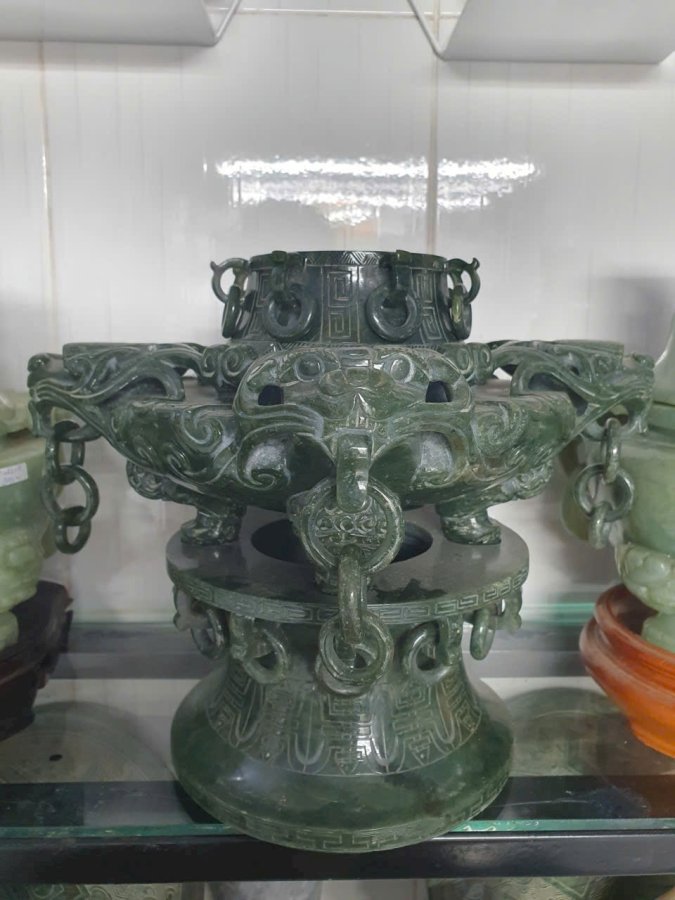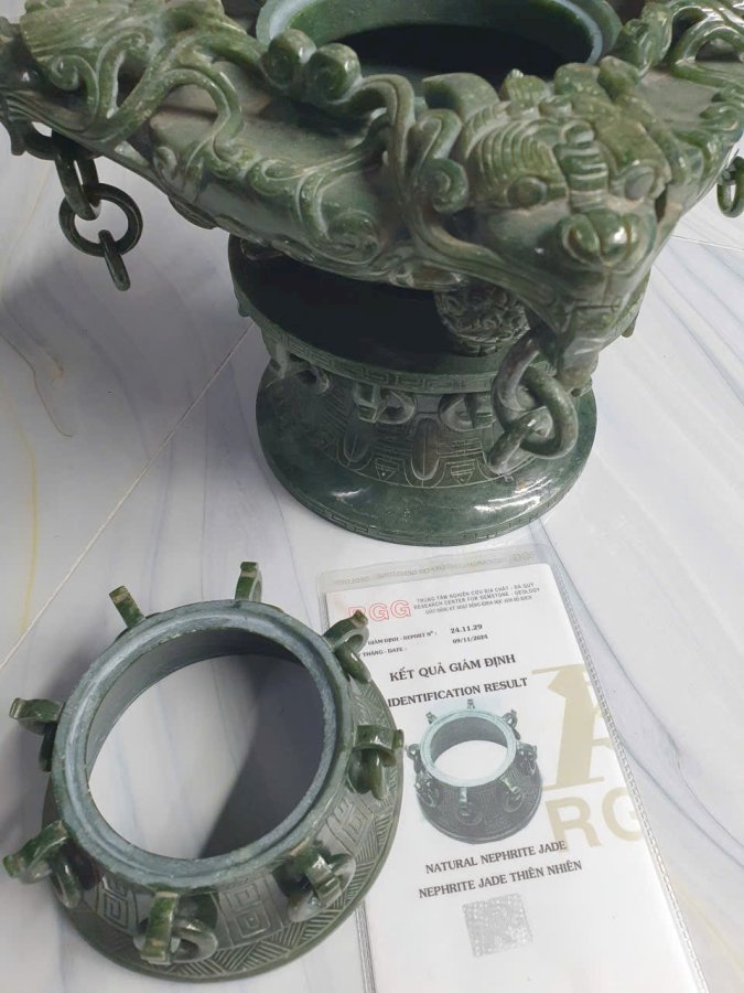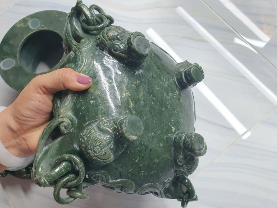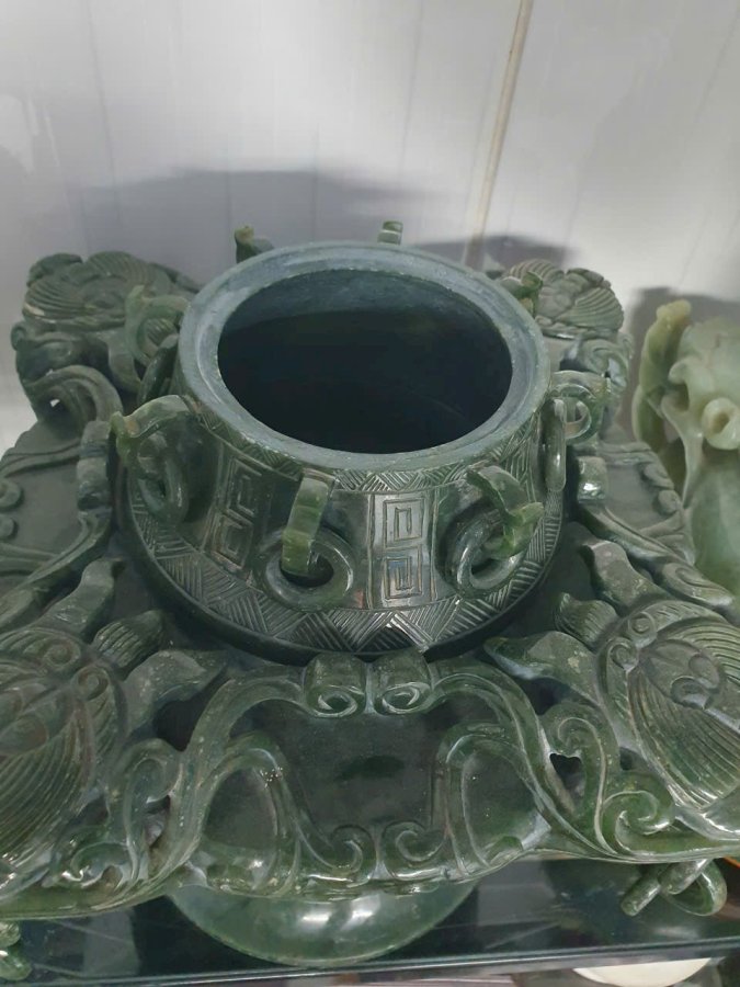 Đỉnh ngọc bích thiên nhiên cao 34cm*đkm 9cm*22cm.Có chứng thư kiểm định 46 triệu