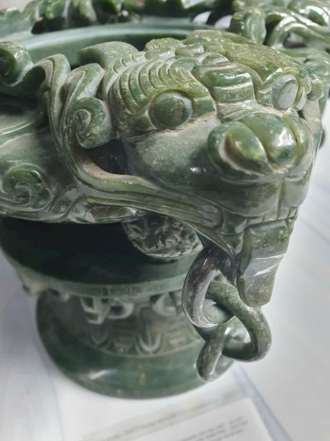 Đỉnh ngọc bích thiên nhiên cao 34cm*đkm 9cm*22cm.Có chứng thư kiểm định