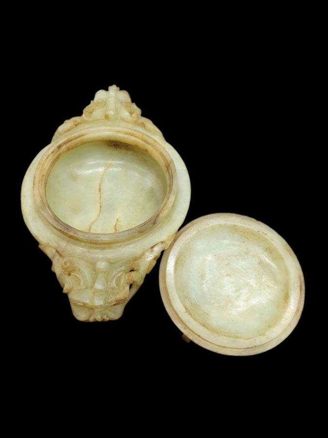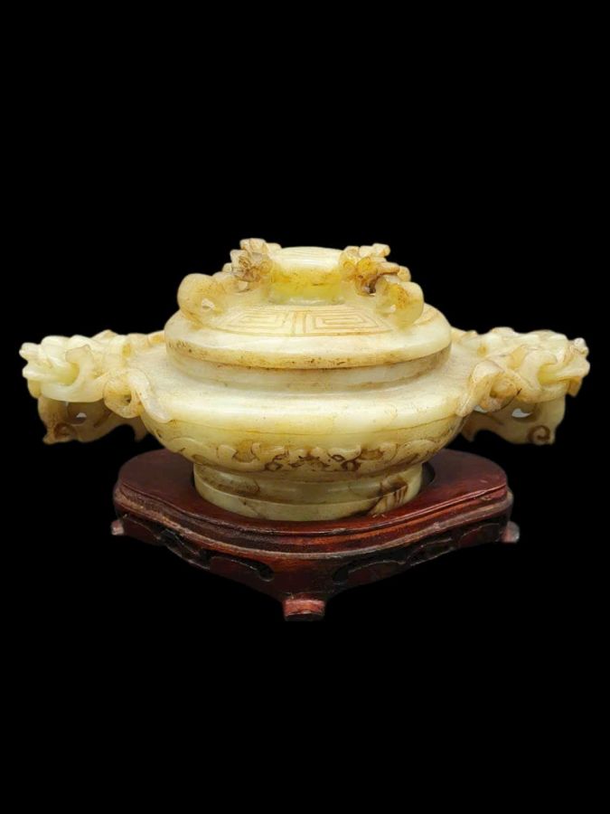 Đỉnh ngọc Hòa Điền xông trầm chuẩn cổ,độc lạ hiếm !Kt cao 9,5cm*13cm*20,5cm*đkm9,5cm.