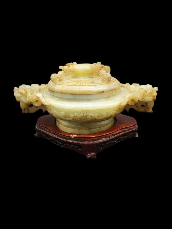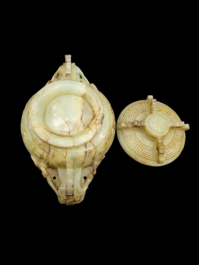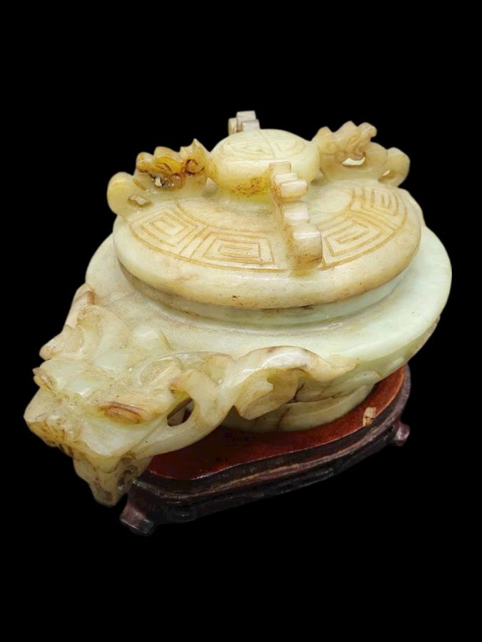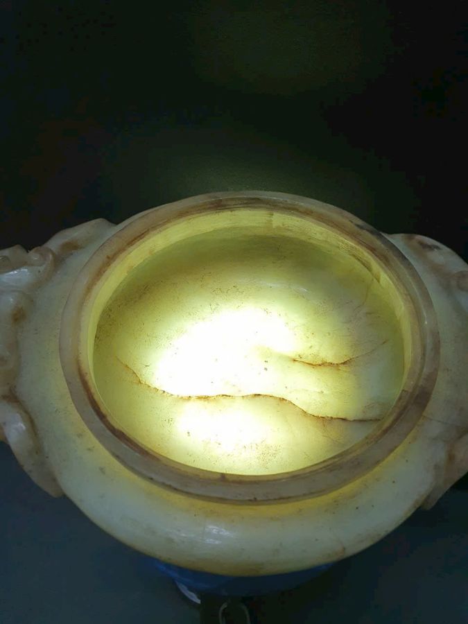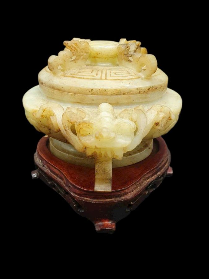 Đỉnh ngọc Hòa Điền xông trầm chuẩn cổ,độc lạ hiếm !Kt cao 9,5cm*13cm*20,5 cm*đkm9,5cm.