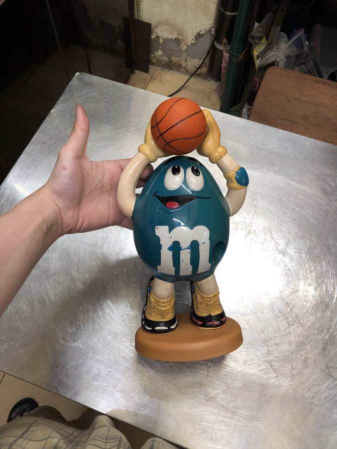 Đồ chơi M&M cầm bóng rổ xưa hình thức đẹp, thích hợp sử dụng trưng bày quán xá hay sưu tầm decor....