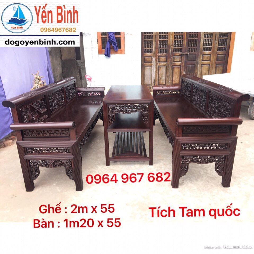 Trường kỉ trạm tích gồm 3 món 2 đoản ghế dài và 1 bàn.