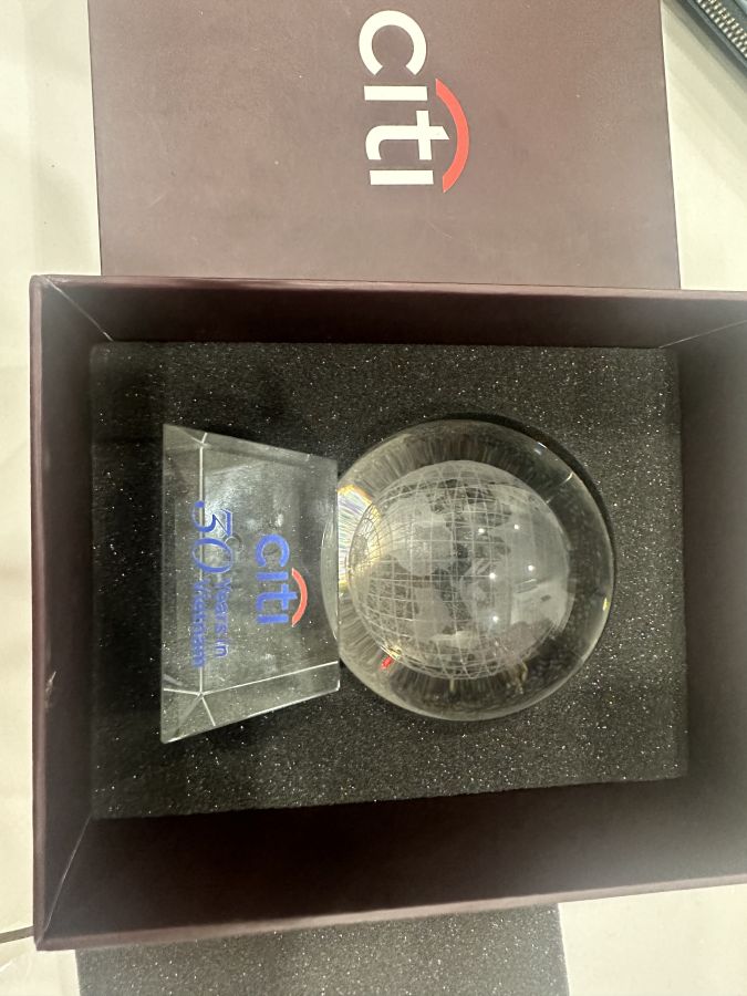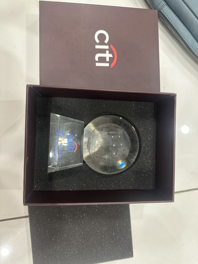 Kỷ biệm 30 năm citi bank bằng pha lê to và nặng new 100% full box