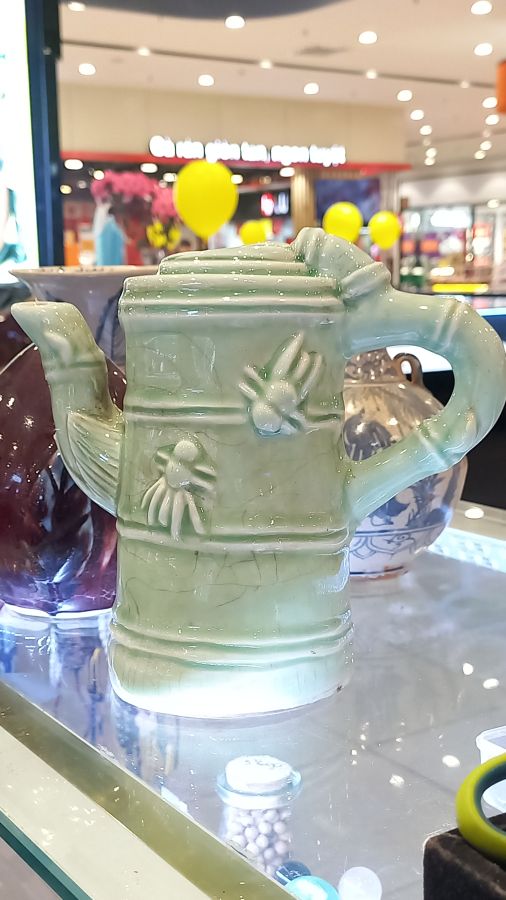 Độc nè. Bình rót ngược tàu chuẩn cổ. Cốt sứ. Men già khú đế.