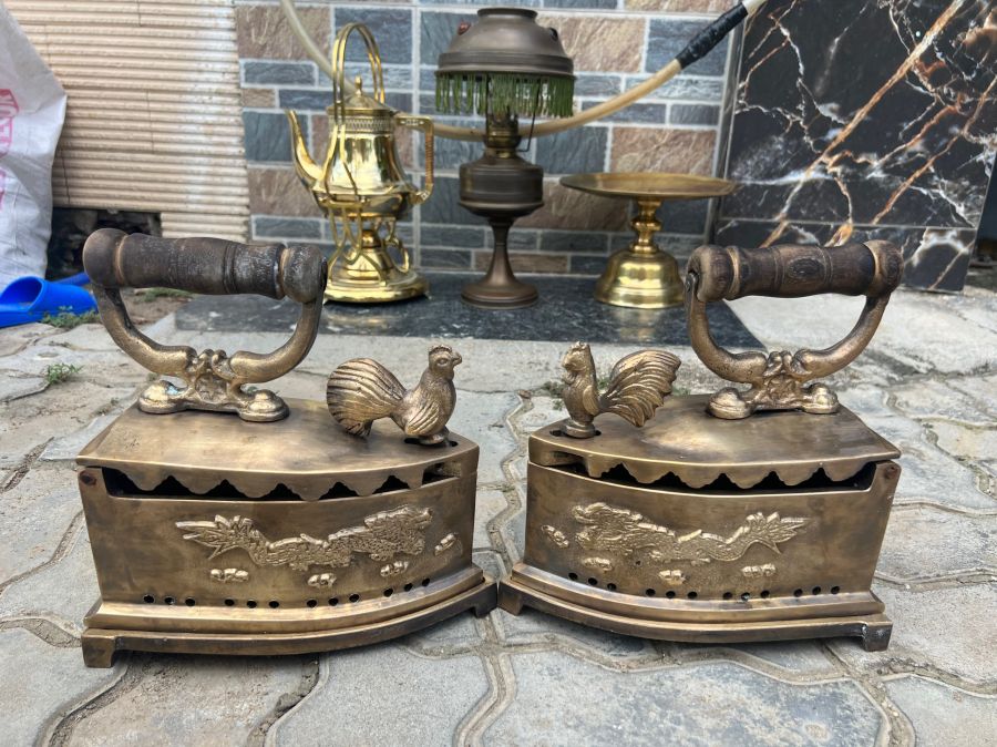 Giao lưu cặp bàn ủi con gà 24 lỗ ( gà trống và gà mái) bằng đồng nặng 14.5kg / 1 đôi.