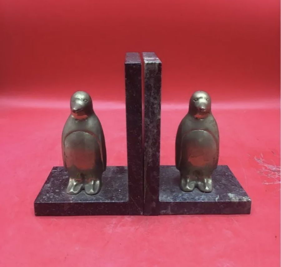 💥80s Đôi chặn sách Chim cánh cụt lớn sang trọng.