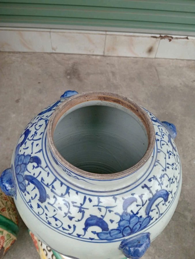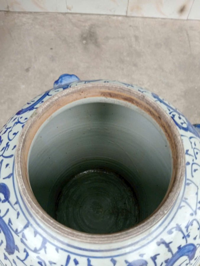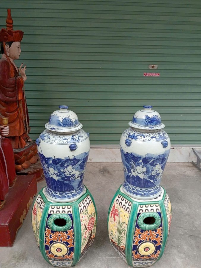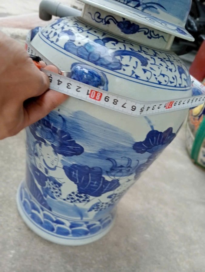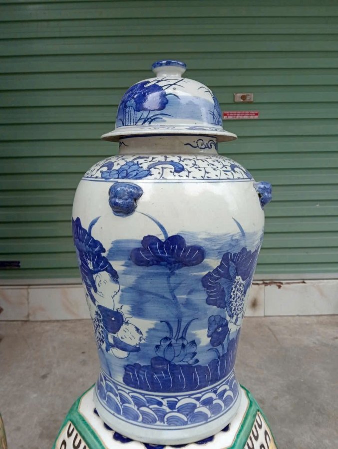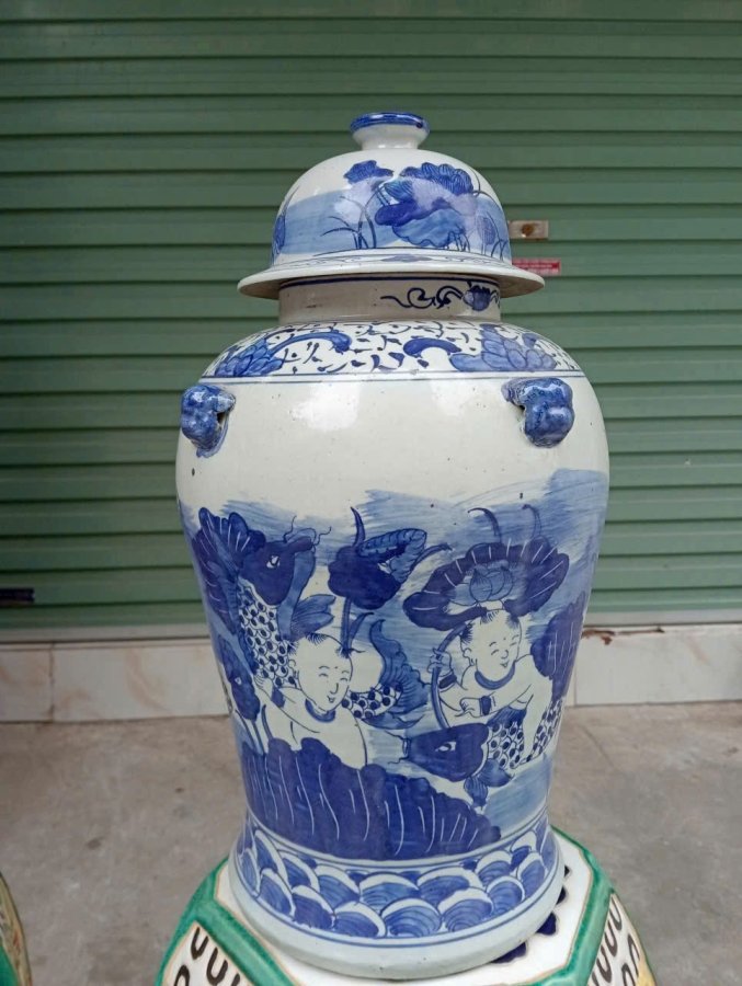 Đôi choé Tàu cũ men chàm tích Đồng Tử & Lá Sen , già đồ , lành tít, cốt dày & nặng đáng để sưu tập.