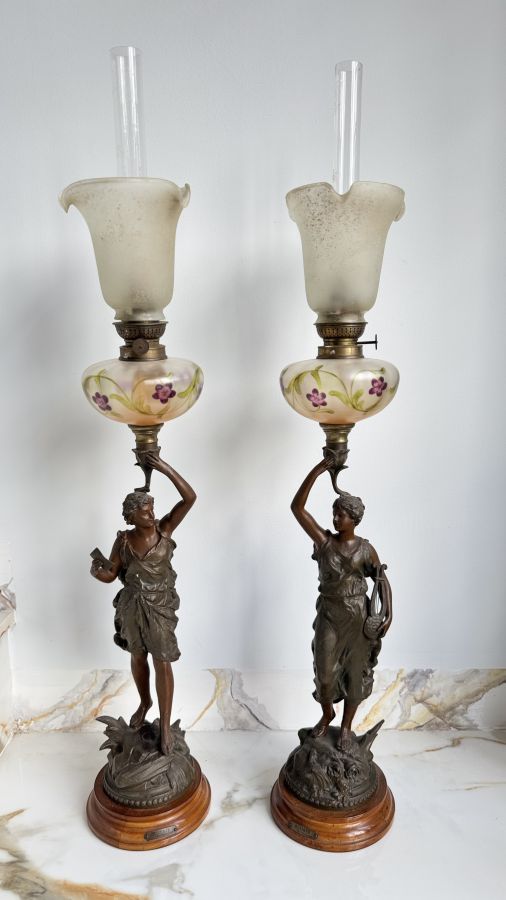 Cặp đèn dầu tượng Mon Tk19 pháp / Đẹp xuất sắc Cao 62 - 84cm - Bàu 13.2cmGiá : Hai mươi mấy Triệu