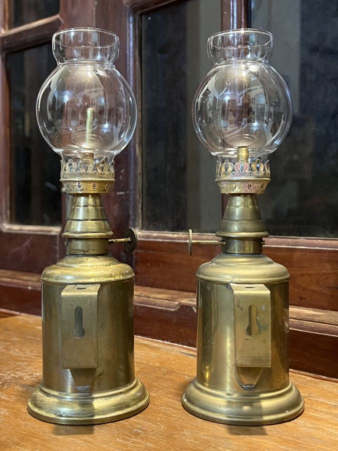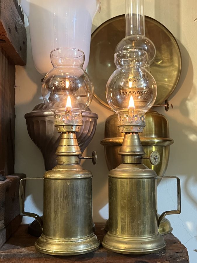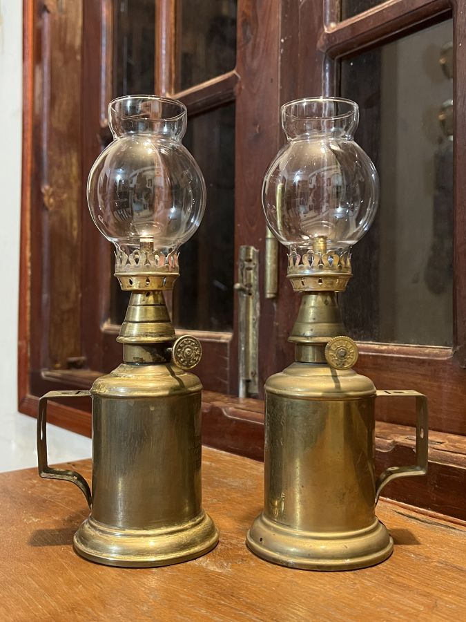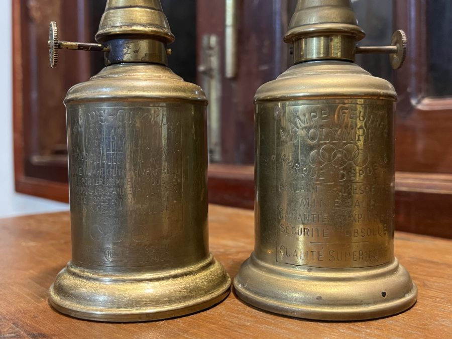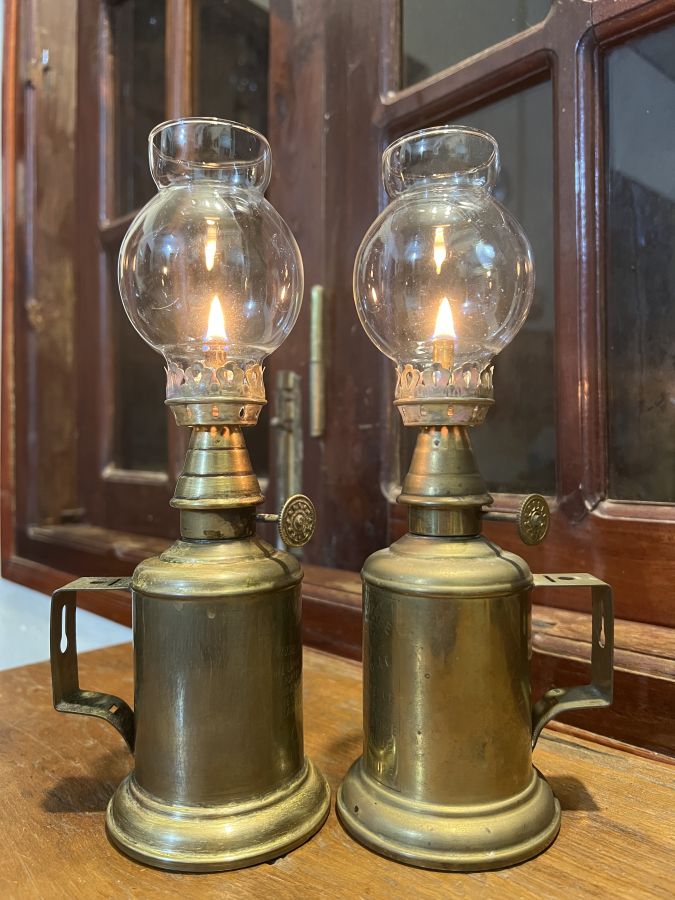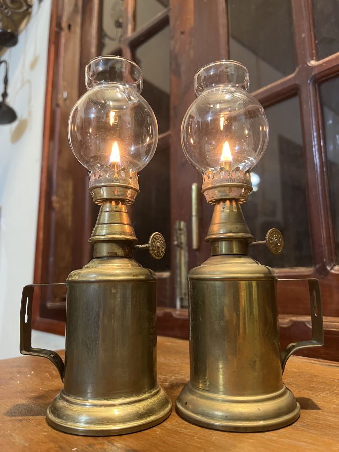 Giao lưu đôi đèn dầu Pháp Cổ = Đồng Hãng SX Lampe Olympe