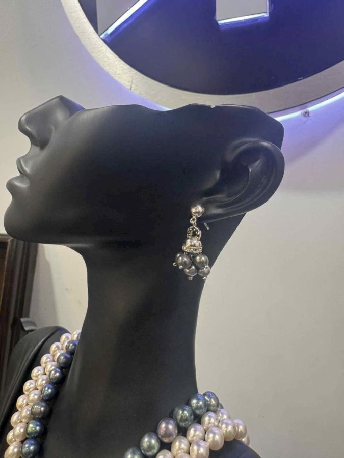 Đôi hoa tai ngọc trai Japan độc lạ, rất sang. Khung bạc si kim. Mỗi bên 8 viên ngọc trai 5-6mm. Em gl 750k Sdt 0925 230 285 em kha Hô nai biên hoa đông nai