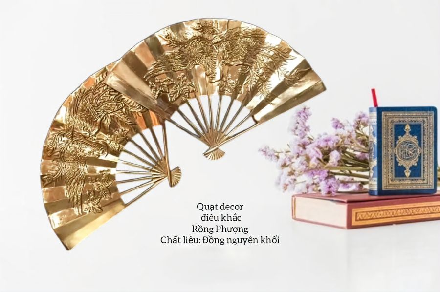 Đôi quạt bằng đồng khắc rồng bay phượng múa