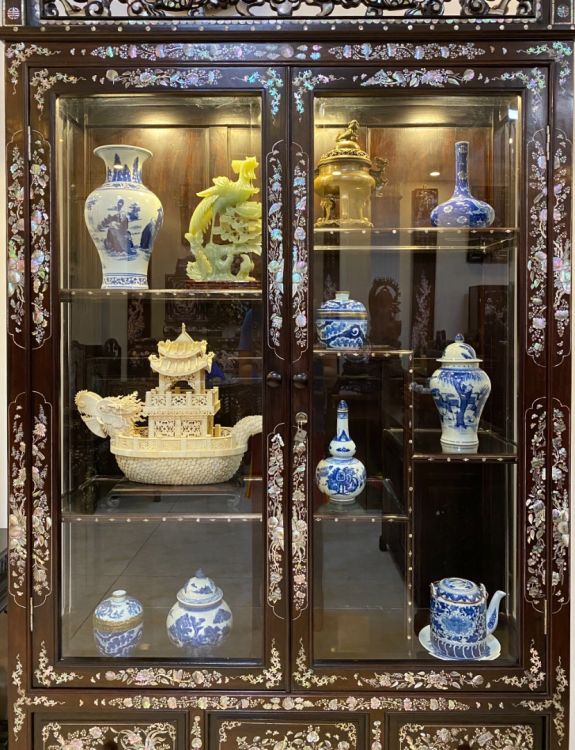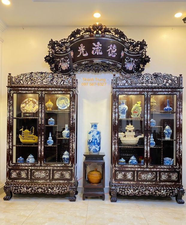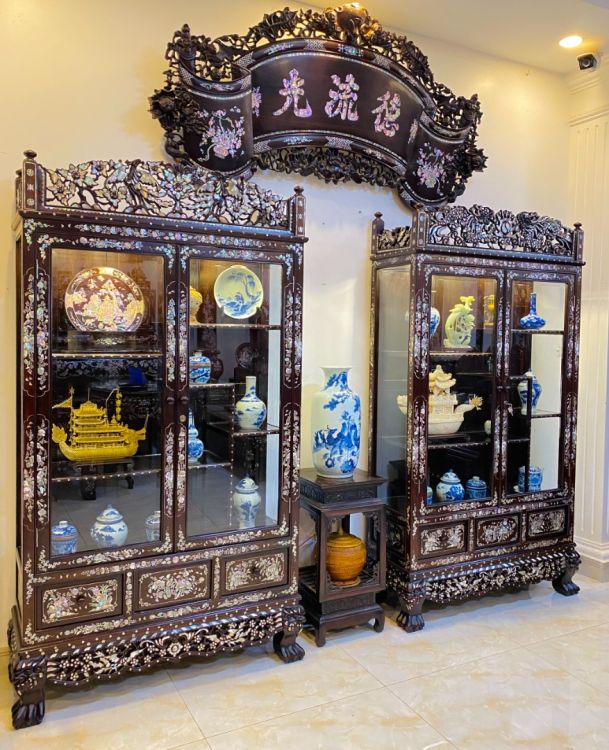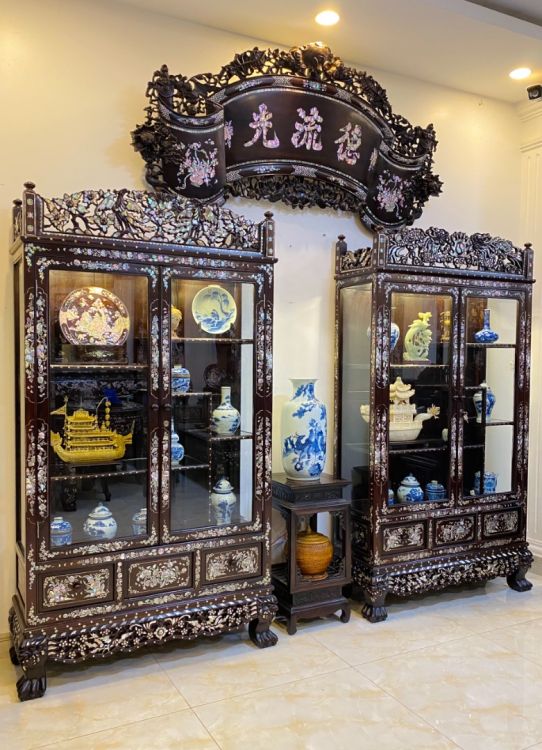 Đôi Tủ Bày Đồ Cổ Khảm Ốc Long Phụng