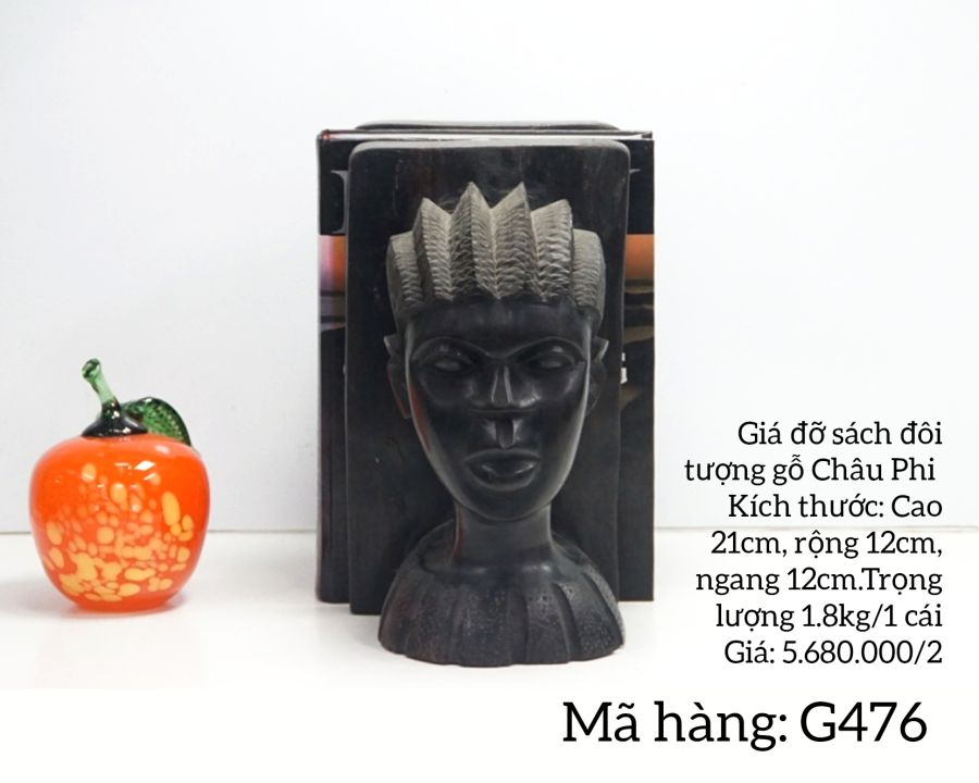 Giá đỡ sách đôi tượng gỗ Châu Phi Kích thước: Cao 21cm, rộng 12cm, ngang 12cm.Trọng lượng 1.8kg/1 cái Giá: 5.680.000/2