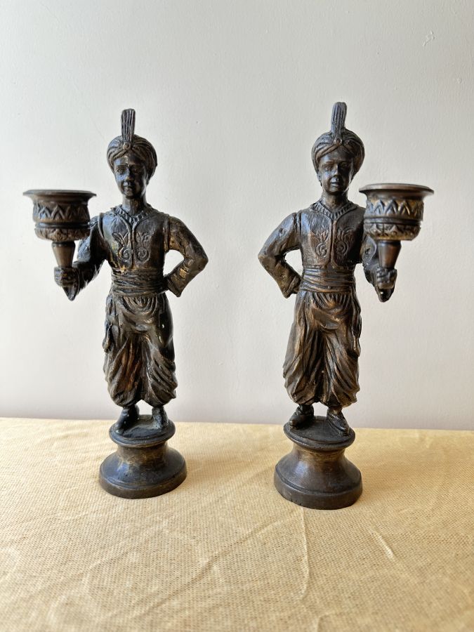 💥Đôi tượng chân nến đồng đặc phong cách Ba Tư trang trí.