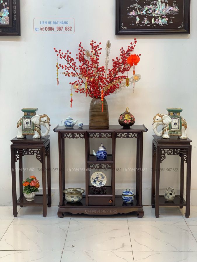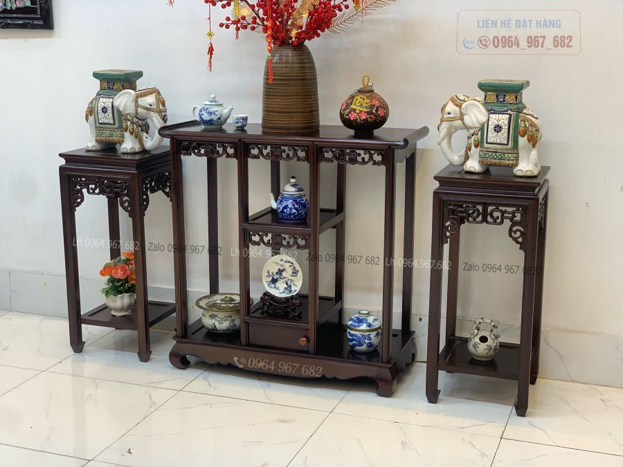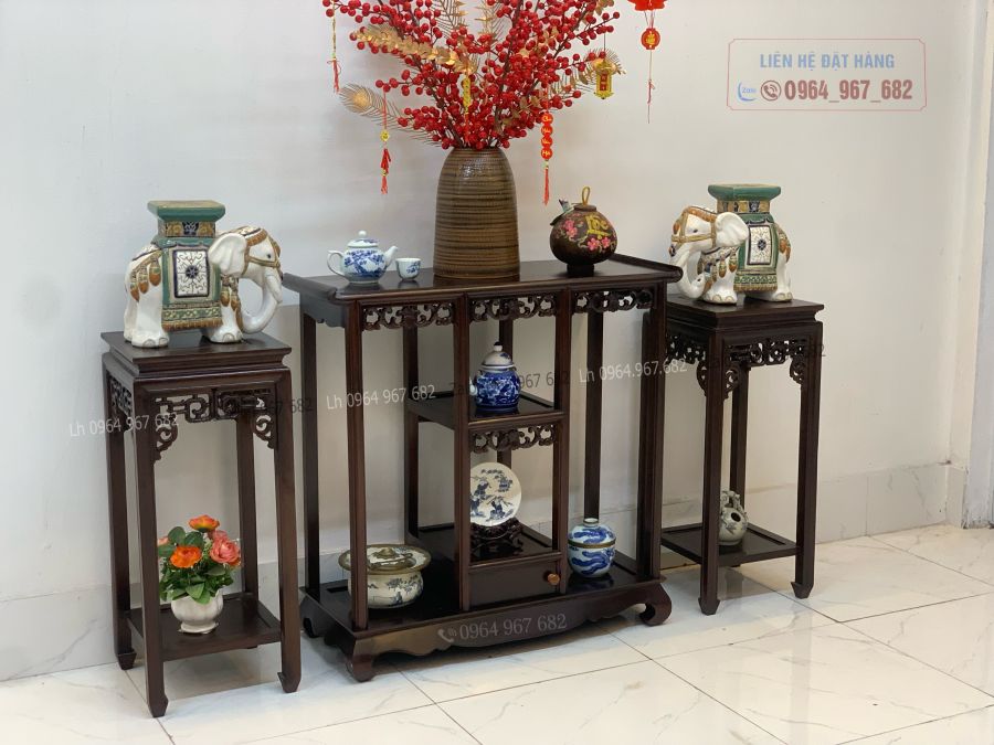 Hiện nay Đôn kệ bày đồ 3 món là loại sản phẩm trang trí được ưa thích nhất vì nó thích hợp với mọi không gian sang trọng cũng như bình dân.