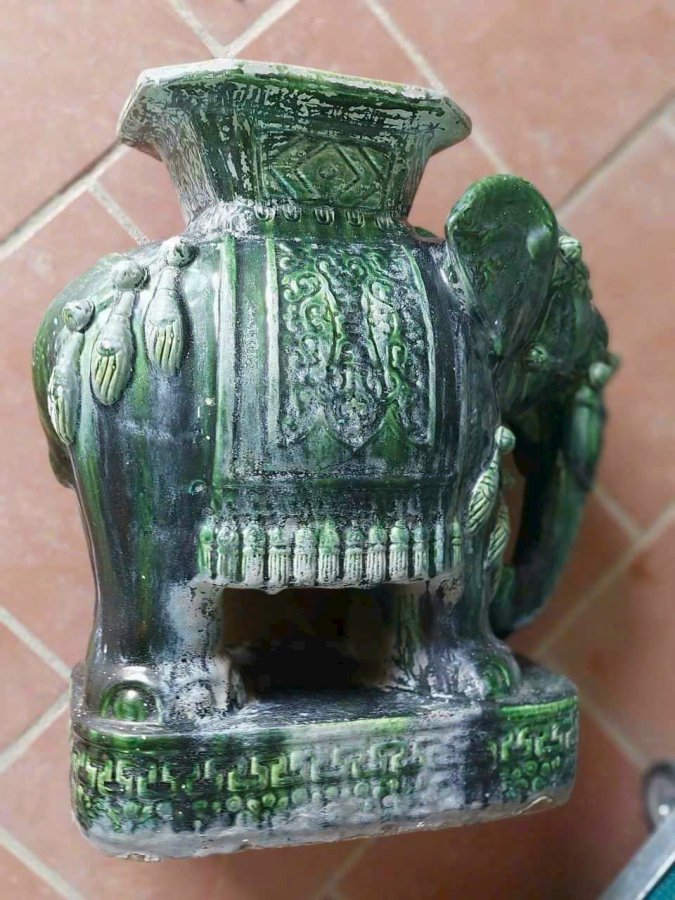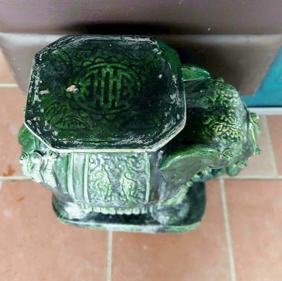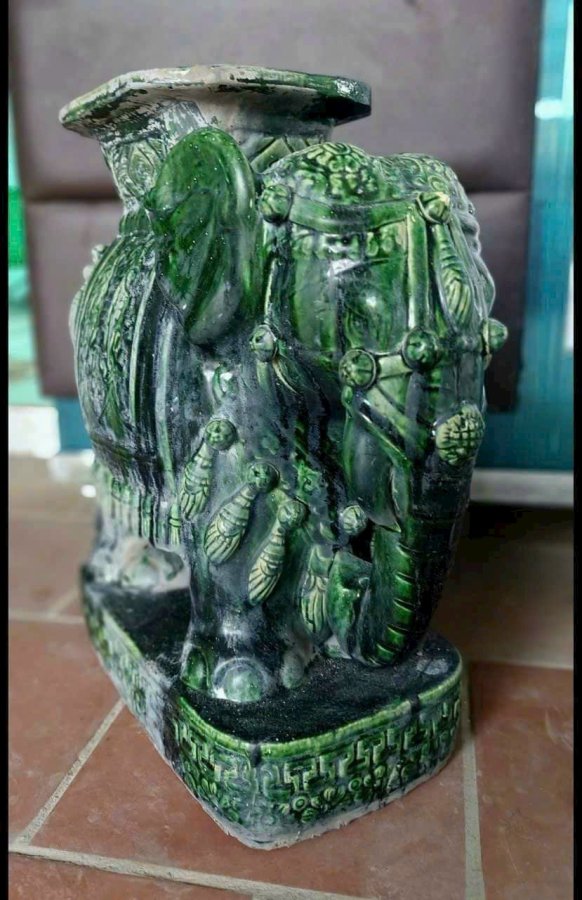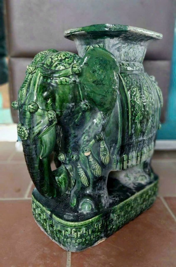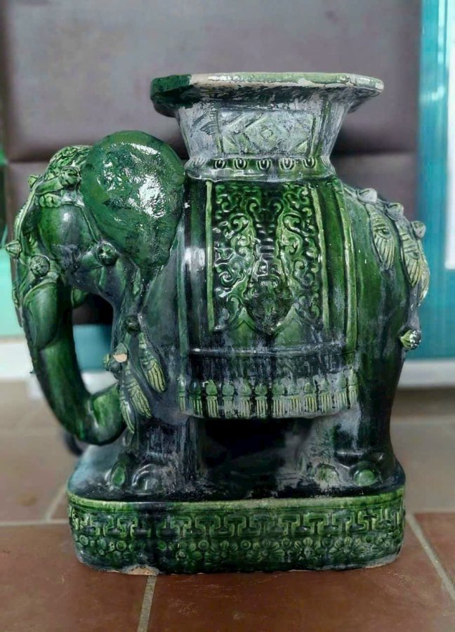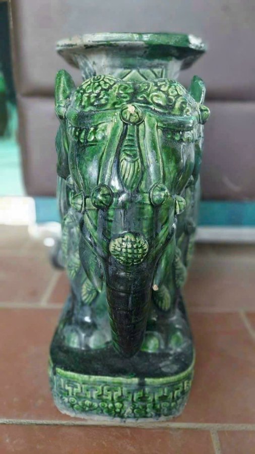 Đôn voi lục gốm Lái Thiêu xưa.Cao 51cm*đkm đôn 21cm*24cm.Sửa nhẹ 1 tai và góc mặt đôn.