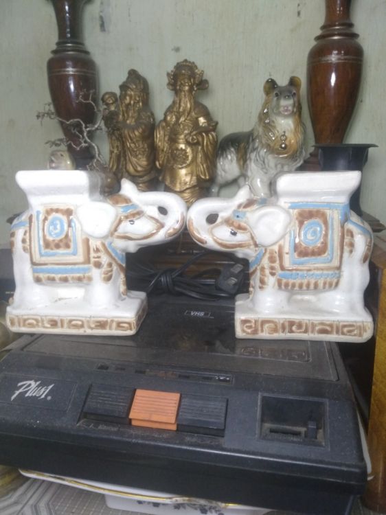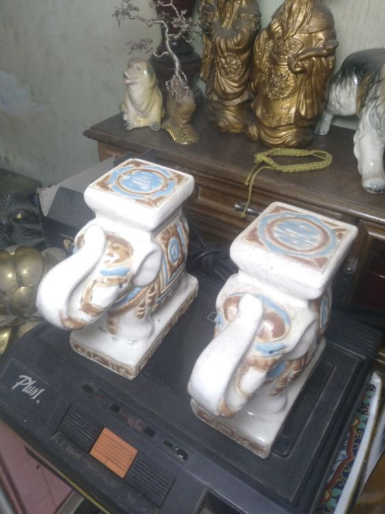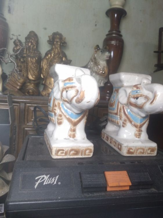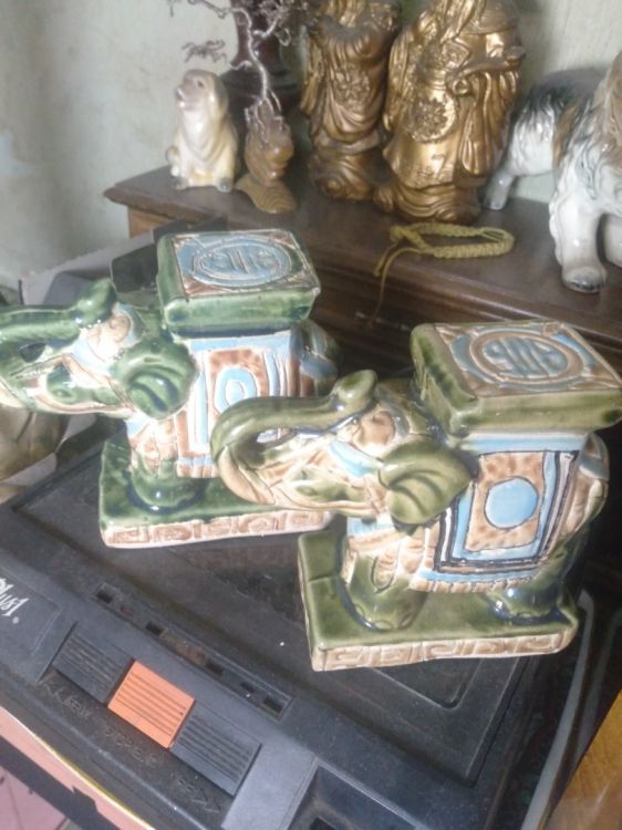 Gl 2 cặp voi gốm men rạn nam bộ xưa làm thủ công vẽ tay.cao 12 cm ,rất đẹp thích hợp decor không gian nhỏ.