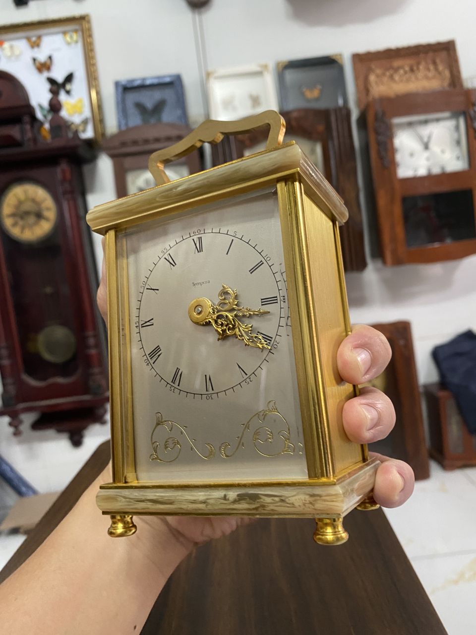 Đồng hồ bàn Tempora đồng vàng style carriage sx Anh quốc 🇬🇧 1950 ! ☎️ Danh 09 4141 0601