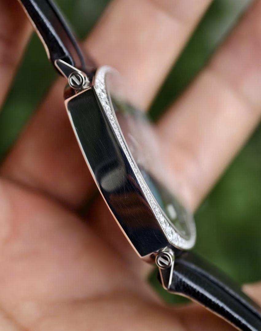 Chống nước ở độ sâu 30m, vỏ được làm bằng vàng trắng 750 với các chi tiết đính kim cương nguyên bản, khiến chiếc đồng hồ trở nên vô cùng sang trọng và ấn tượng!