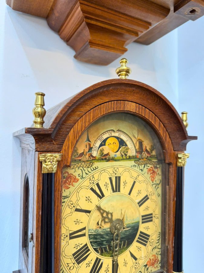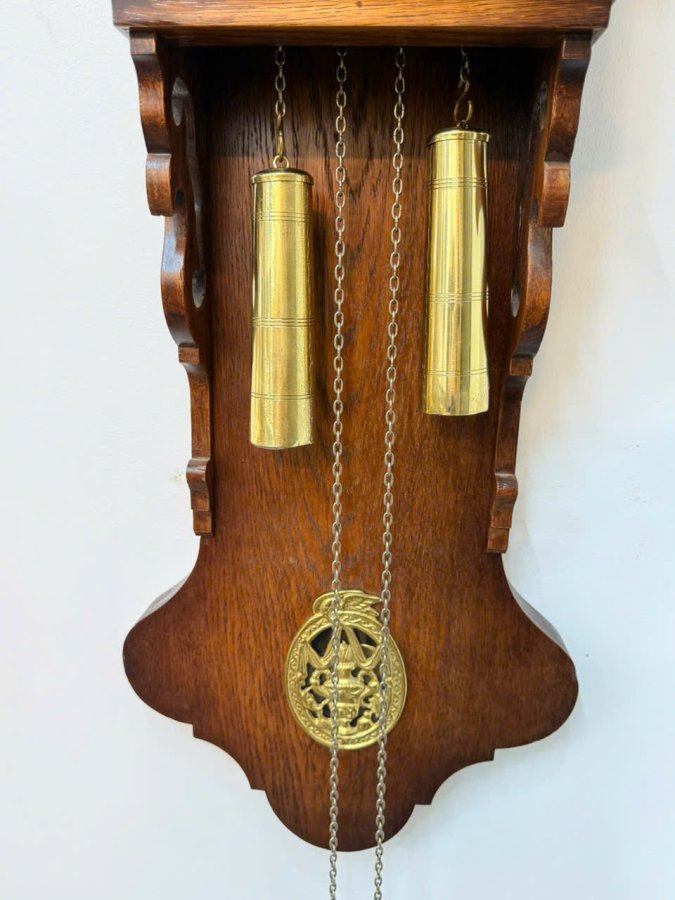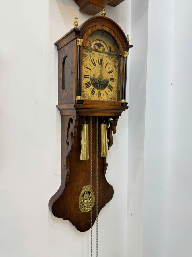 Chiếc đồng hồ mang phong cách cổ điển Hà Lan, vỏ gỗ phối đồng tinh tế.