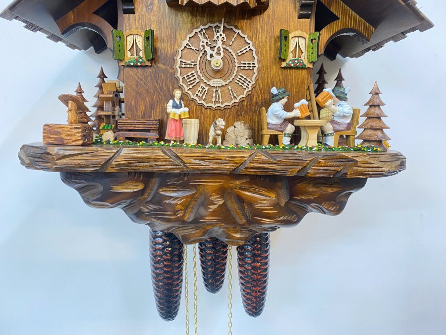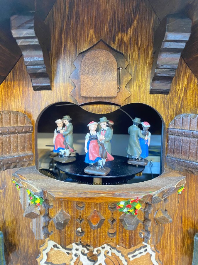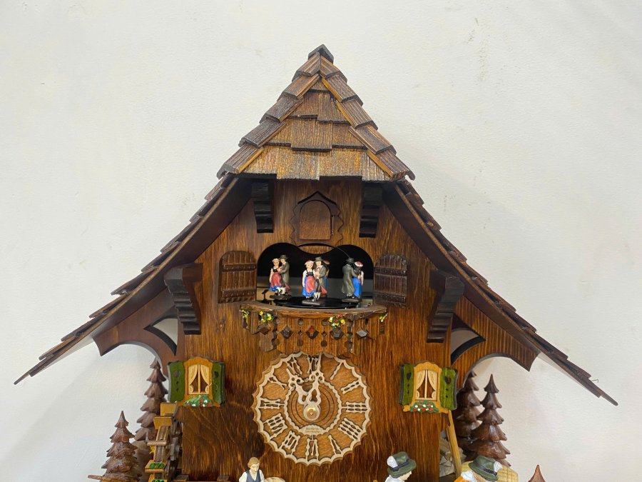 👏 Chiếc đồng hồ sở hữu nhiều hoạt động :cối xay gió, khách nâng ly chuyển động,đầm xoay và không thể thiếu là chú chim Cuc-koo Cuc-koo .