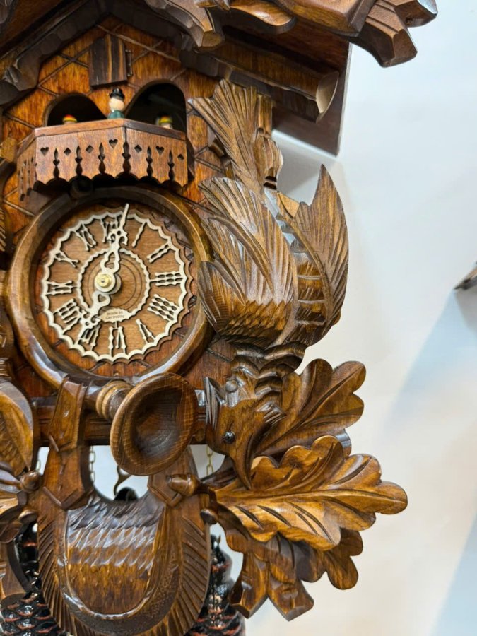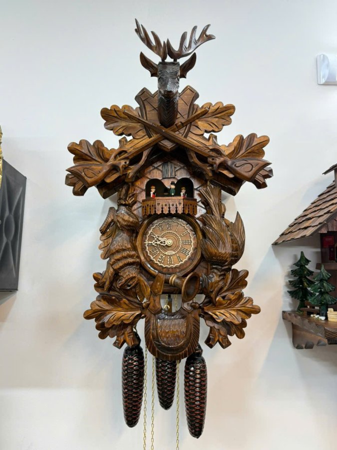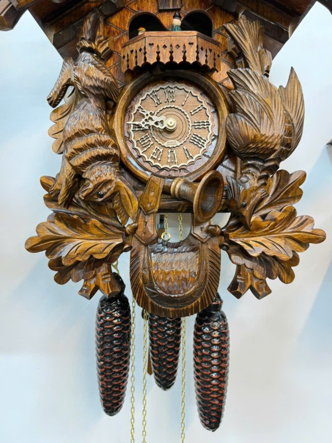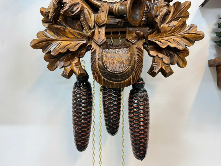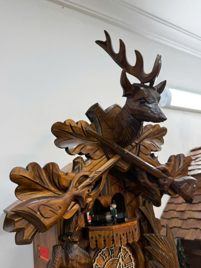 🎤 Máy : Chính Hãng 𝐑𝐄𝐆𝐔𝐋𝐀 3 tạ xích (tạ nhạc, tạ máy, tạ chuông), hoạt động quả lắc gỗ được điêu khắc, chạy 𝟕 ngày lên dây. Sở hữu gong vòng và tiếng Cúc Cu cổ điển của dòng đồng hồ Cuckoo. Đặc biệt phần hộp gió để tạo tiếng Cúc Cu được sản xuất riêng tại Thụy Sỹ