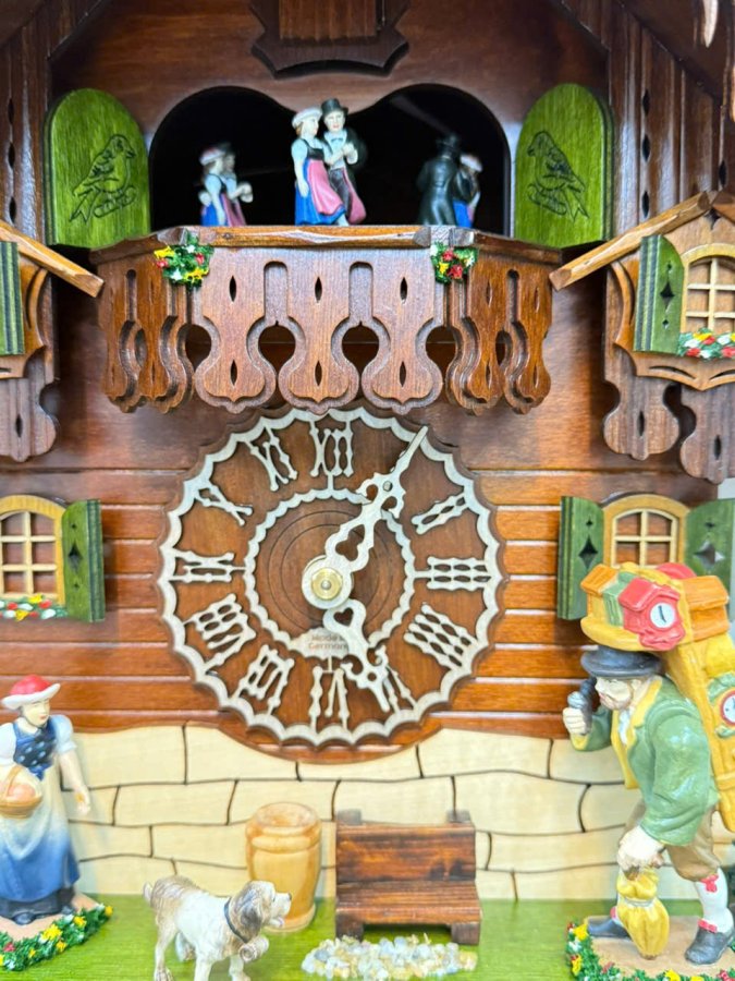 👏 Chiếc đồng hồ sở hữu nhiều hoạt động :cối xay gió, thợ đồng hồ chuyển động,đầm xoay và không thể thiếu là chú chim Cuc-koo Cuc-koo .