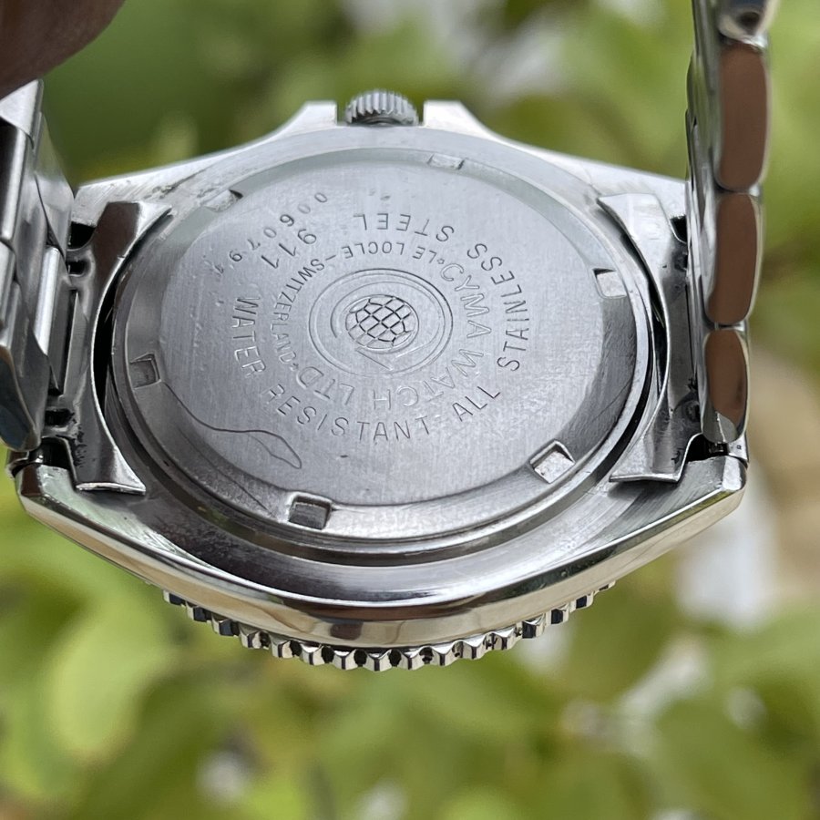 Đồng hồ Cyma lặn 100m chính hãng Thuỵ sĩ nguyên zin 100% ( dây thép zin kèm theo dài 17,5cm có tăng đưa nới ra ) - cơ chế pin hoạt động tốt - size 41mm chưa núm - tình trạng rất đẹp - giá 1.368k ( Miễn trả giá ). Kính mời