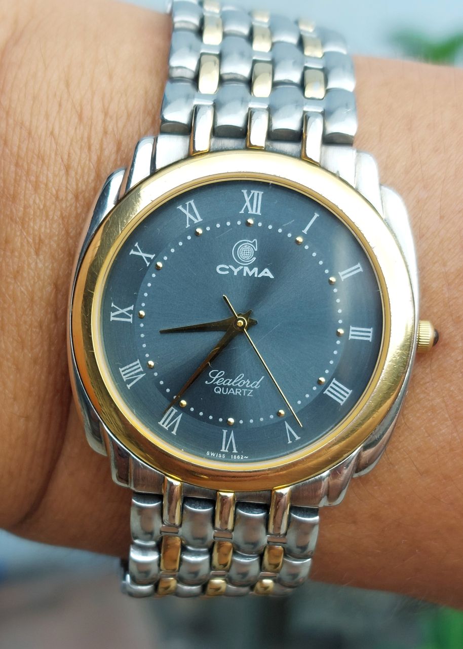 Máy vàng pin thụy sĩ chính hãng Cyma đang chạy chuẩn giờ