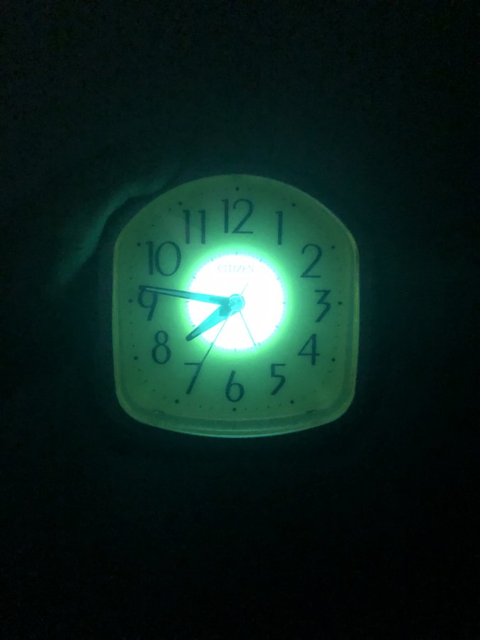 Đồng hồ mặt và kim màu xanh dạ Quang rất dễ nhìn khi trời tối,có đèn và chuông báo thức,đồng hồ máy to sử dụng pin trung,có trầy xước nhẹ nhưng vẫn còn đẹp và chạy tốt.Đồng hồ kim trôi chạy rất êm không tạo tiếng ồn,cho giấc ngủ sâu.Cảm ơn đã xem tin