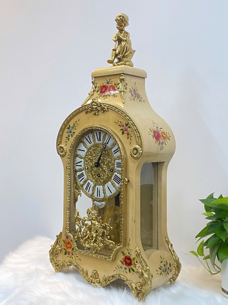 Đồng hồ để bàn Bouble cu tí thổi kèn trumpet- Franz Hermle sản xuất tại Ý năm 1970