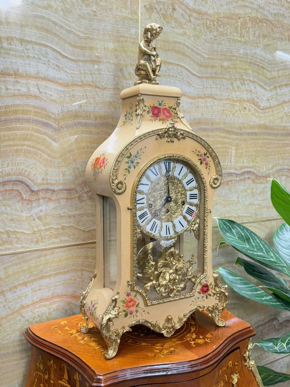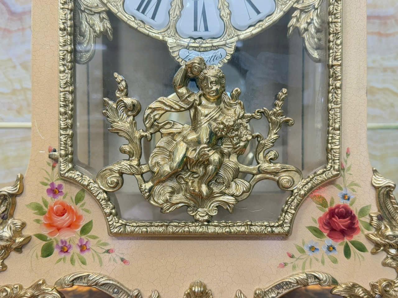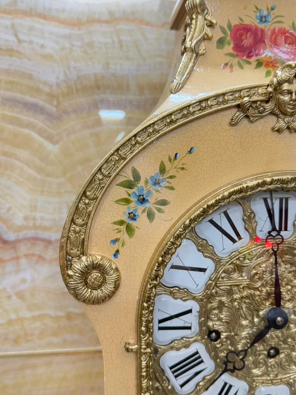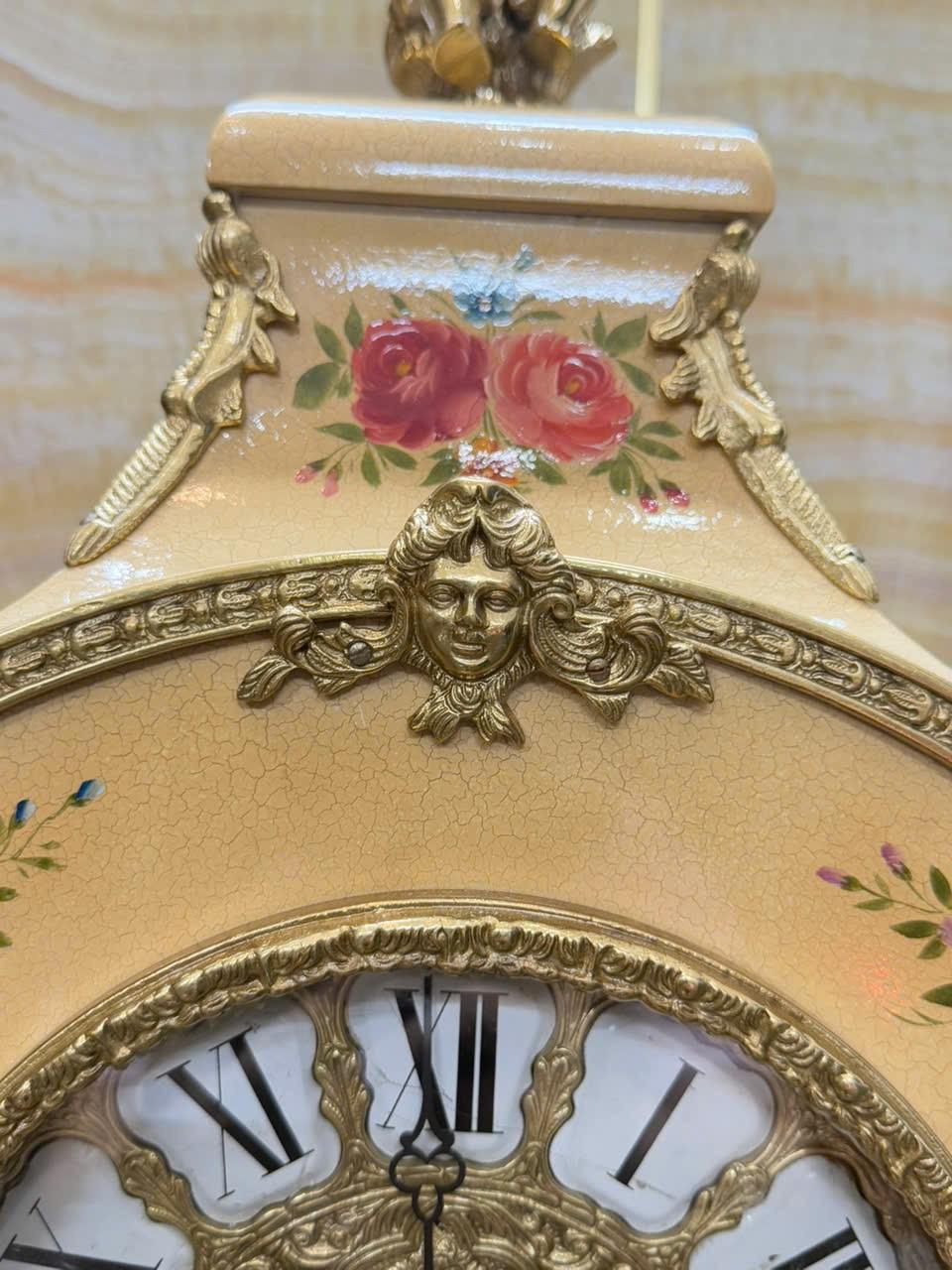 • Mặt men nổi , số la mã cổ điển trên nền đồng đúc chạm rất đẹp