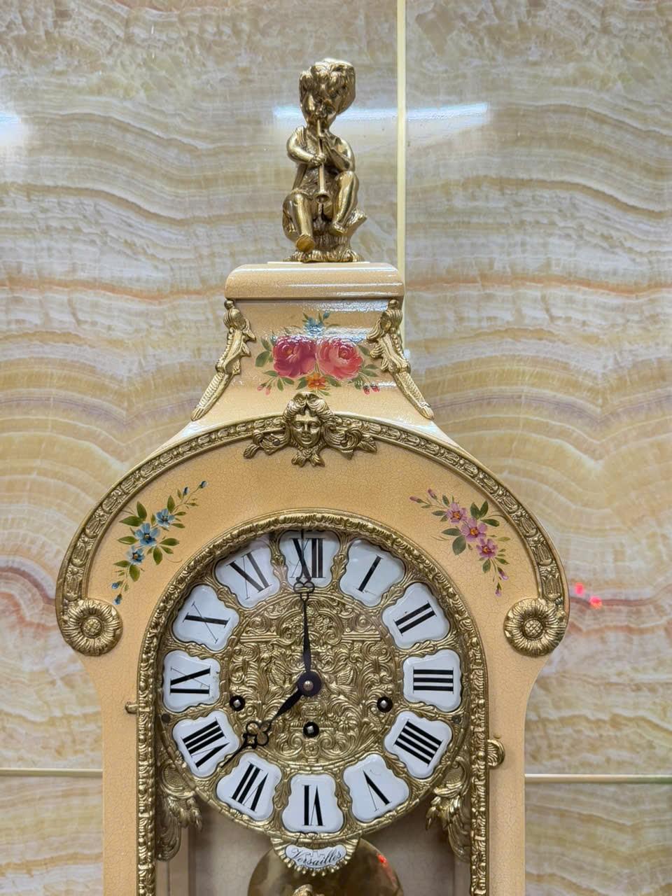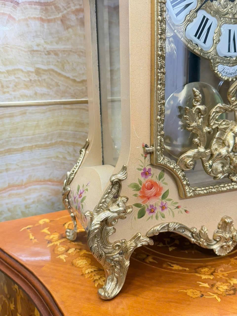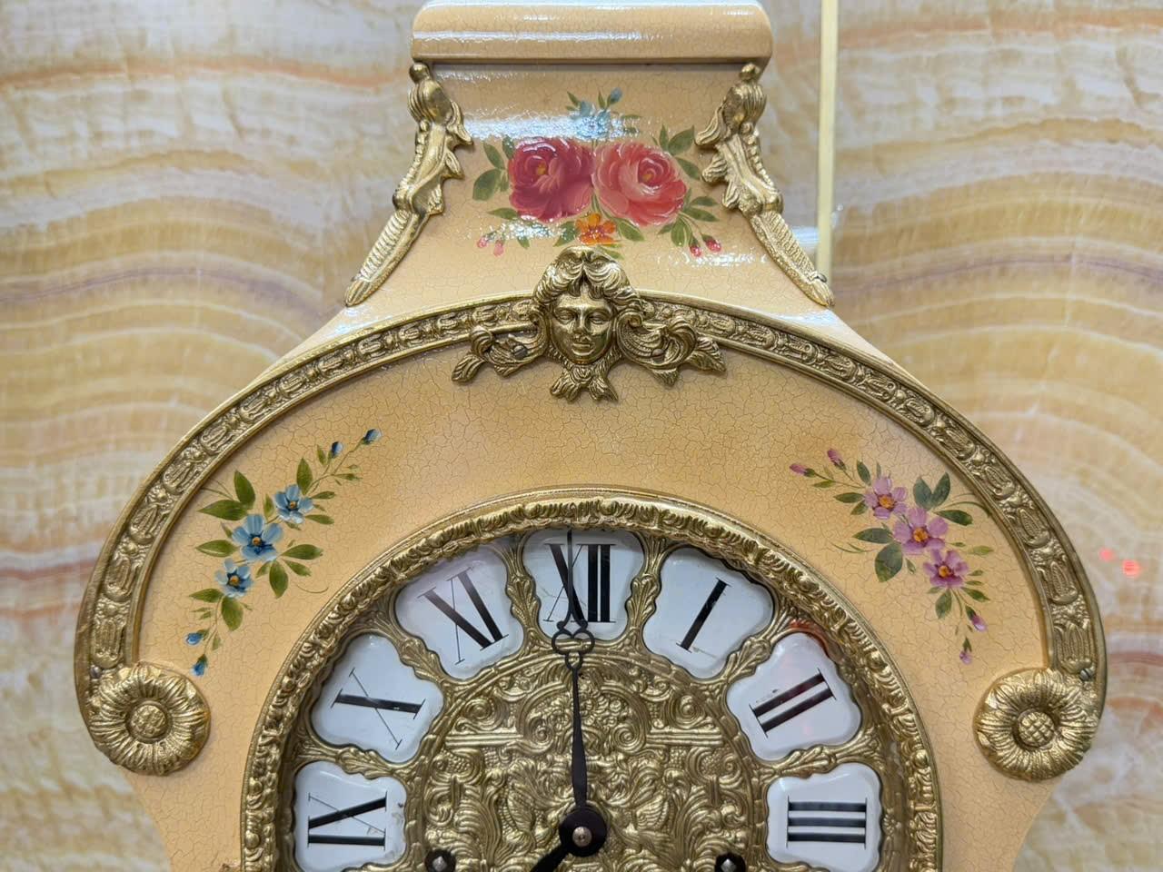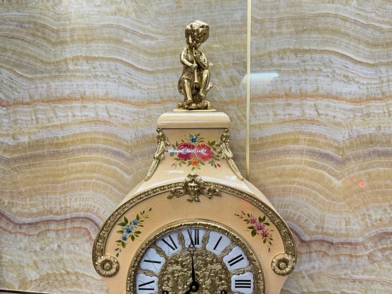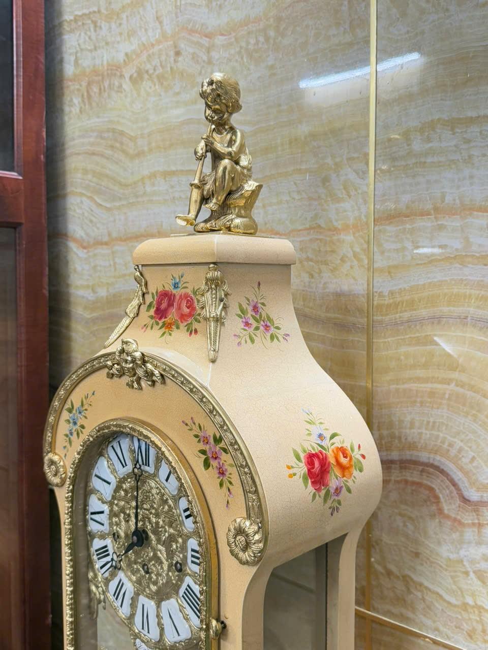 • Mặt men nổi , số la mã cổ điển trên nền đồng đúc chạm rất đẹp