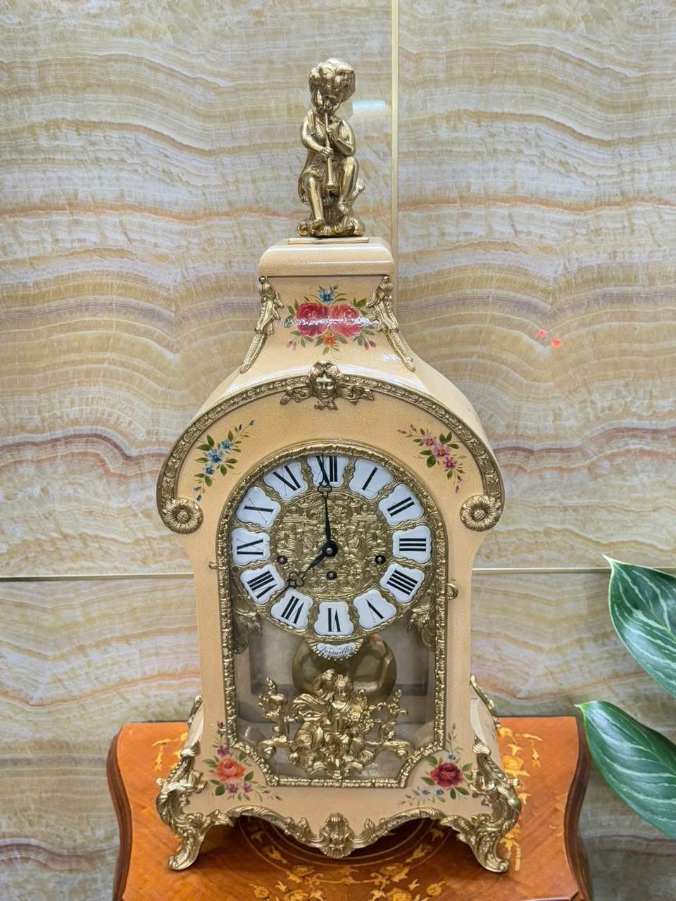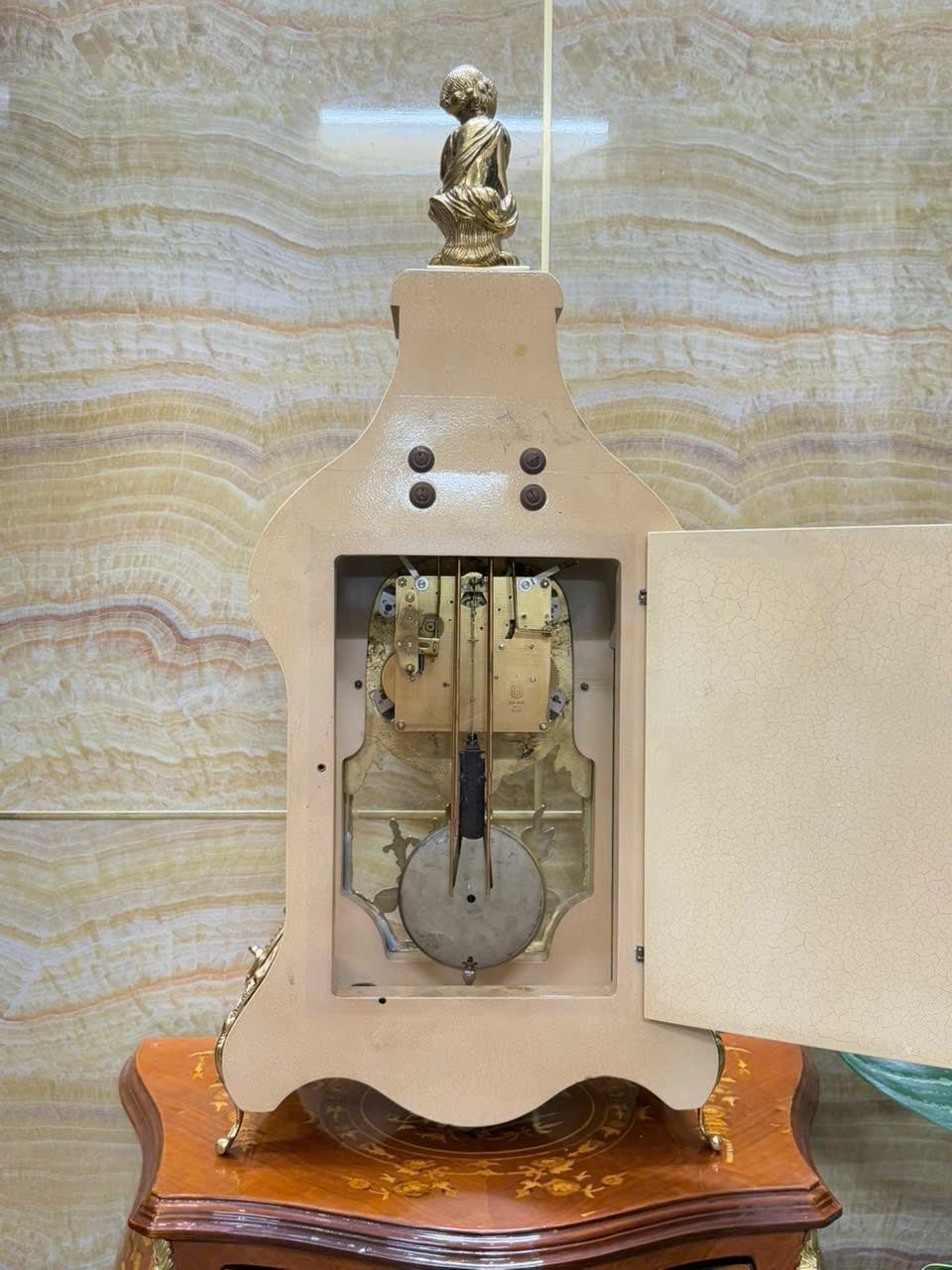 Đồng hồ để bàn Bouble cu tí thổi kèn trumpet- Franz Hermle sản xuất tại Ý năm 1970