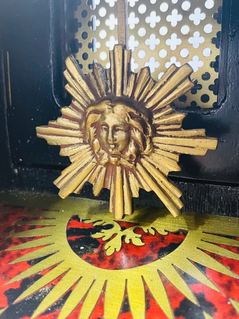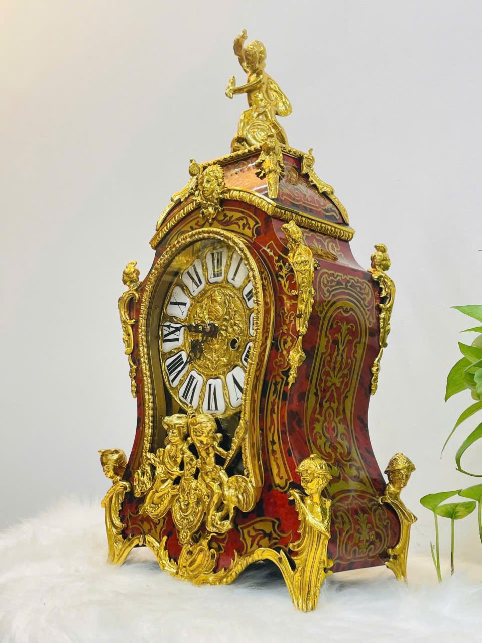 🚨 Mẫu đồng hồ tuyệt đẹp này được chế tác tinh xảo với lớp veneer mai rùa đỏ trên vỏ đồng hồ gợn sóng đặc trưng. Những chi tiết trang trí tinh xảo bằng và đồng mạ vàng tô điểm toàn bộ vỏ đồng hồ. Điểm nhấn trang trí còn được thể hiện qua hình ảnh thiên thần baby trên đỉnh đồng hồ , 4 chân của đồng hồ được làm bằng đồng mạ vàng đúc hoa văn cùng thiên thần 4 góc rất sang trọng mang đậm phong cách hoàng gia Châu Âu xưa ...