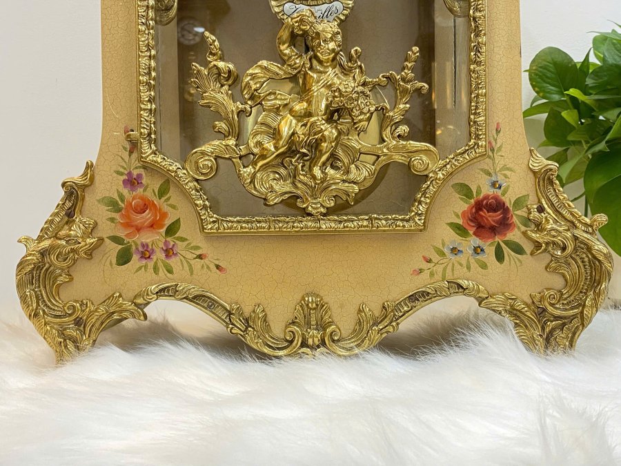 Đồng hồ để bàn Boulle cu tí thổi kèn trumpet- Franz Hermle sản xuất tại Ý năm 1970