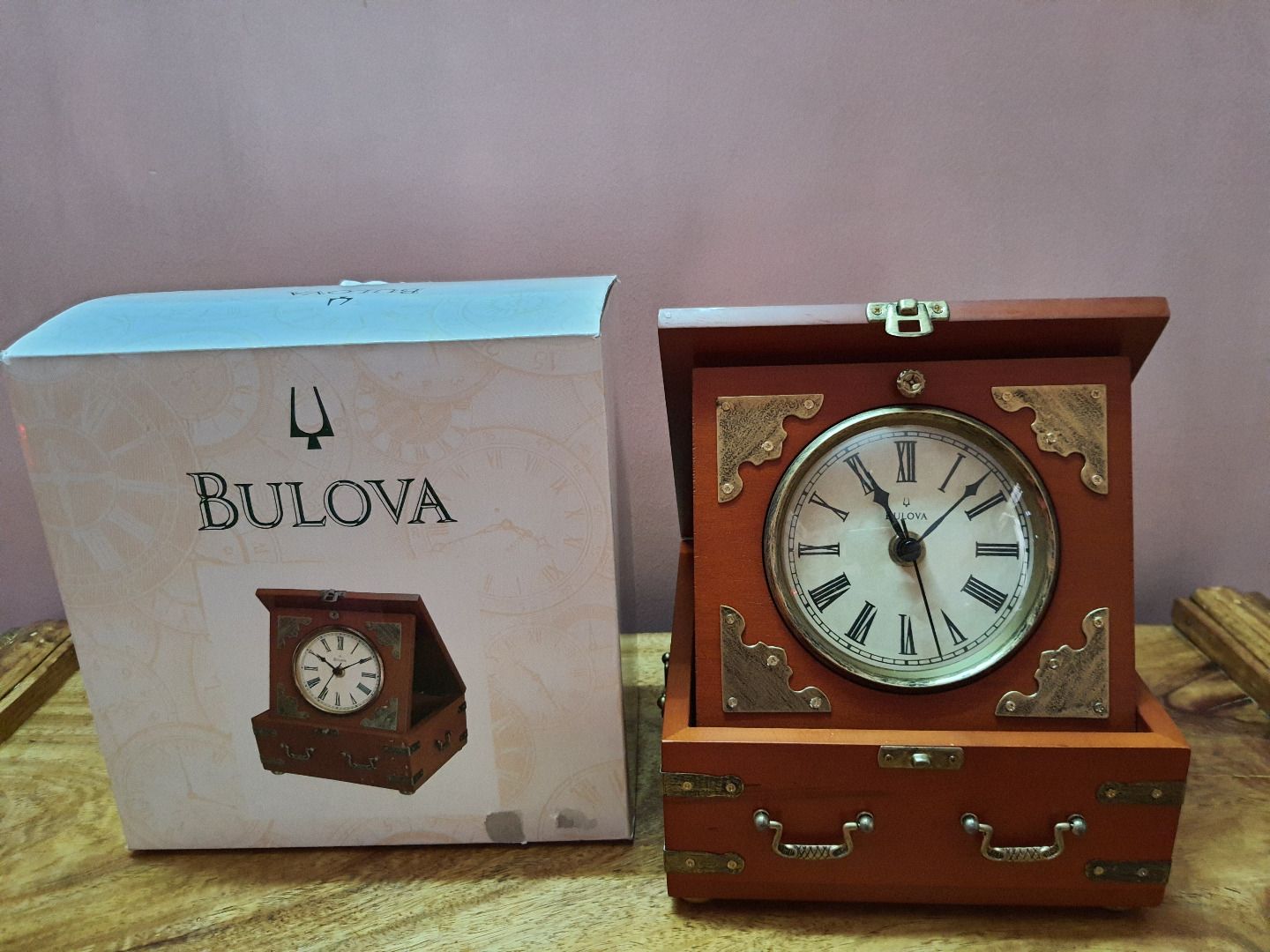 _ Đồng hồ để bàn BULOVA chính hãng, máy pin, hoạt động tốt, còn đẹp như mới