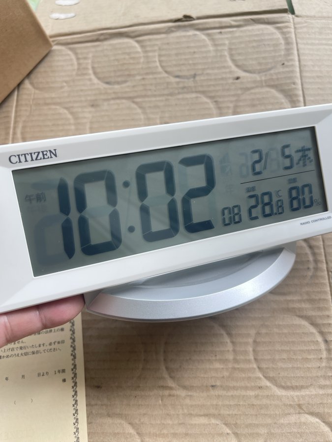 Sản phẩm là đồng hồ để bàn kỹ thật số có báo thức chạy sóng radio còn mới chưa qua sử dụng. Nó có báo nhiệt độ, ẩm độ chuẩn xác, có thể điều chỉnh chạy thông thường không cần sóng radio. Sản phẩm thương hiệu Nhật sản xuất tại China. Cám ơn đã xem tin.