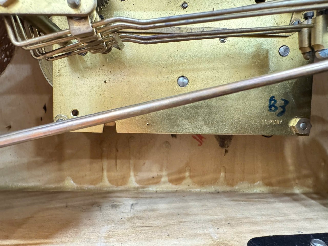 • Bộ máy Đức 5 gong 5 búa chơi nhạc Westminster, đã lau dầu, chạy tốt.