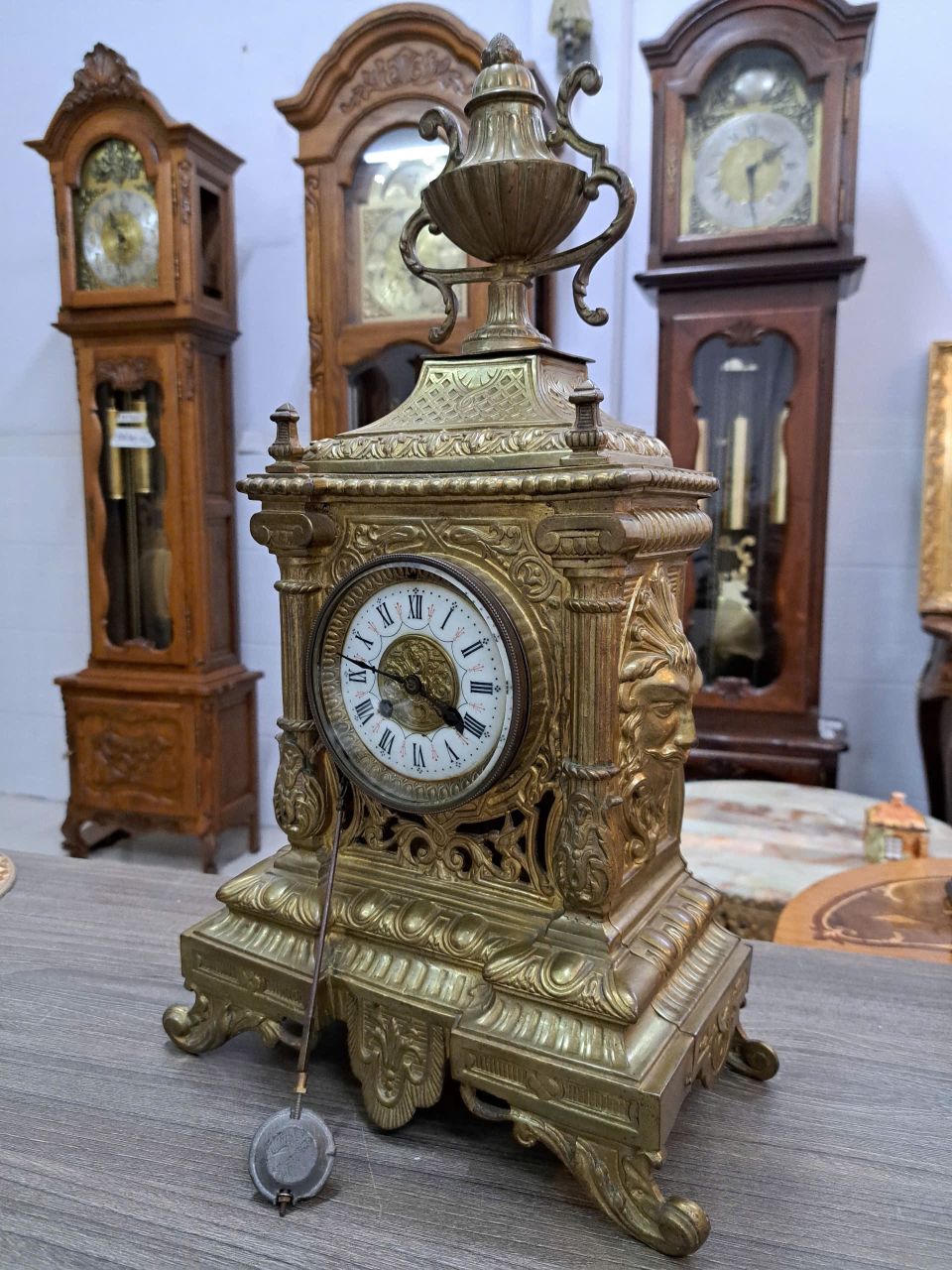 Đồng hồ để bàn máy Japy Pháp cổKT: C 53cm, N 30cm30' Chuông chén điểm giờ(Bao đắp lại men mẻ mặt số)Đủ lắc!