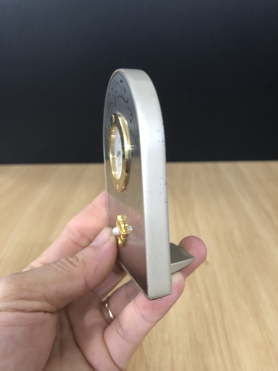 Đồng hồ thân vỏ bằng kim loại,chạy rất đúng giờ,loại đồng hồ nhỏ gọn rất thích hợp cho anh chị sử dụng để bàn làm việc xem giờ hay decor kệ tủ.Cảm ơn đã xem tin