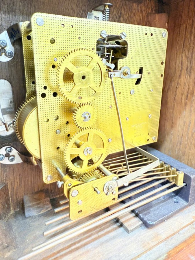 - Sở hữu bộ máy Đứcchính hãng :chạy tuần 3 ổ cos, 8 chiêng 8 chuông chơi 3 bài nhạc , có chế độ ngắt chuông . + Âm chuông vang hay ,15 phút gõ nhạc 1 lần