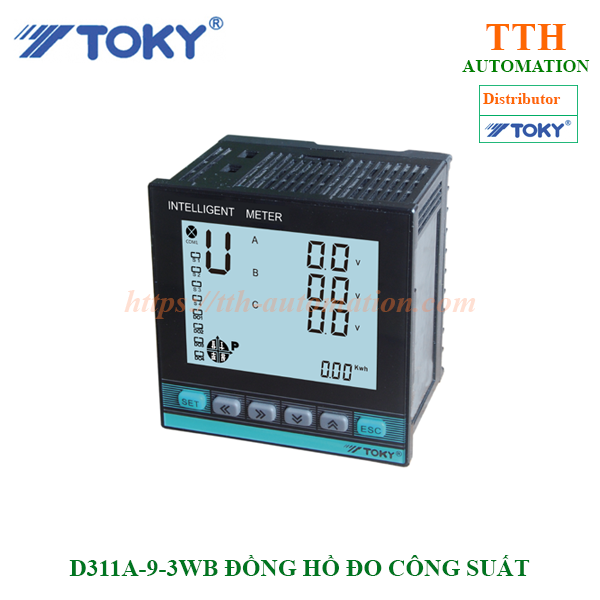 D311A-9-3WB Đồng hồ đo công suất thông minh, đo và hiển thị đến 28 thông số lưới điện: điện áp pha, điện áp dây, dòng các pha, công suất tác dụng, tổng công suất tác dụng, công suất phản kháng, tổng công suất phản kháng, công suất biểu kiển, tổng công suất biểu kiến, hệ số công suất…