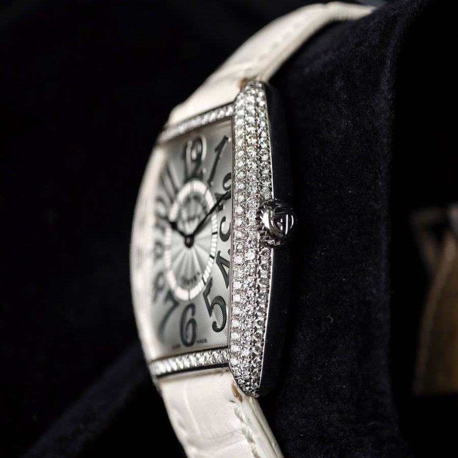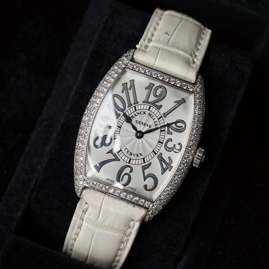 Đồng hồ Franck Muller Cintree Curvex 7502 Qz DTình trạng full box Size 28mm Vàng khối 18kt White Gold & Diamond