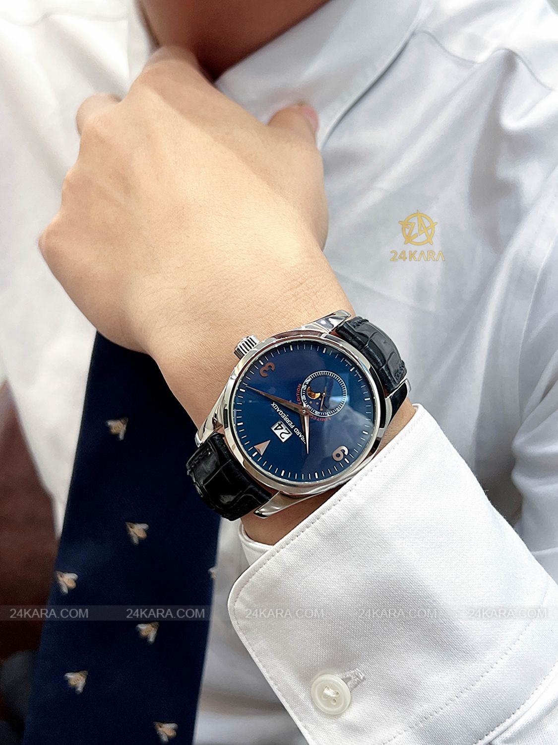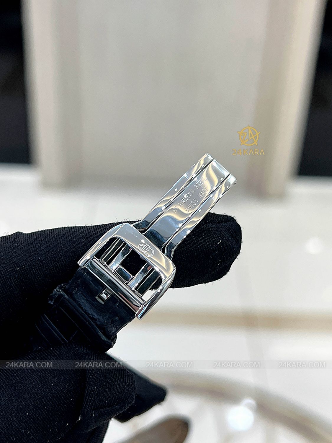 Loại máy Bộ máy tự động Cal. GP03300, tần số dao động 28800 vph, 27 chân kính, trữ cót 46 giờ.