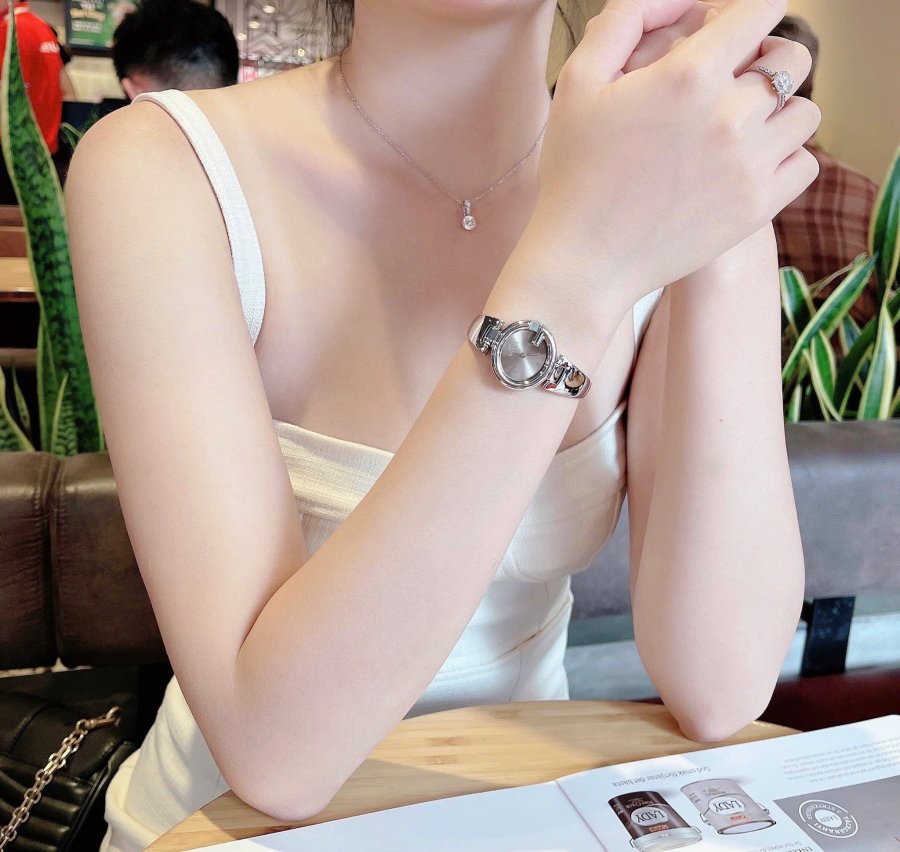 Đồng Hồ Gucci Nữ ( Kiểu Lắc Tay ) Mặt nâu, size 27mm ( Như Mới )